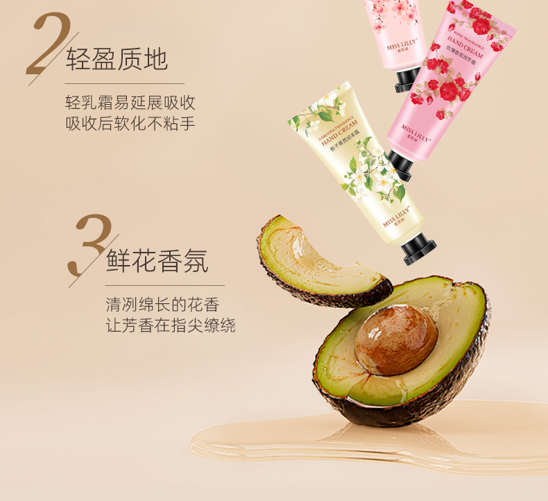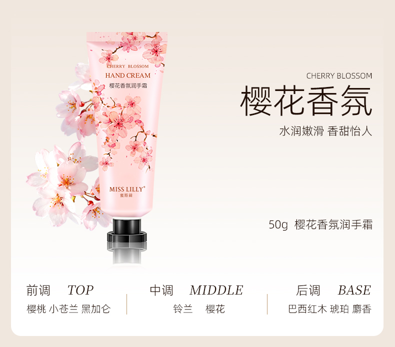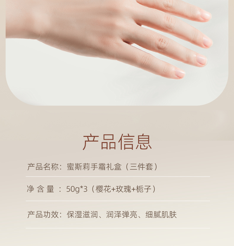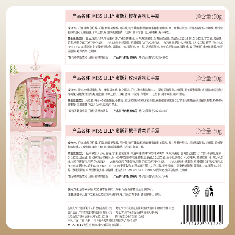 蜜斯莉 MISS LILLY 手霜礼盒三件套 樱花+玫瑰+栀子 MSL047 50g*3 粉色(单位:套)