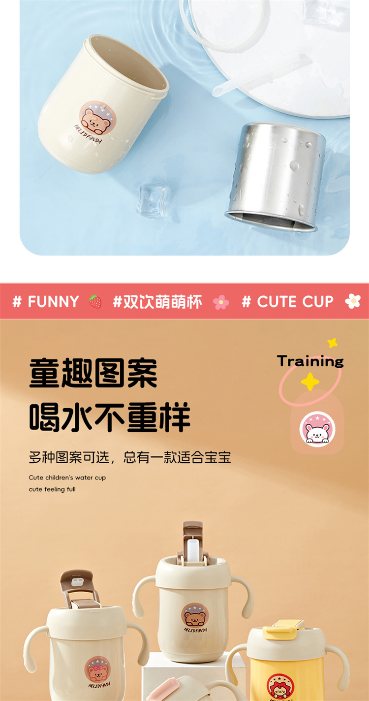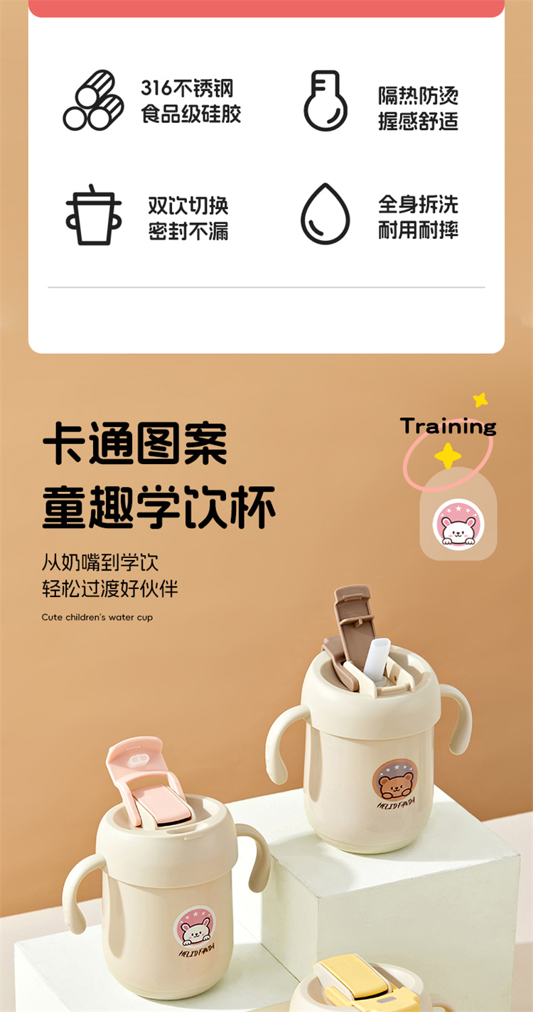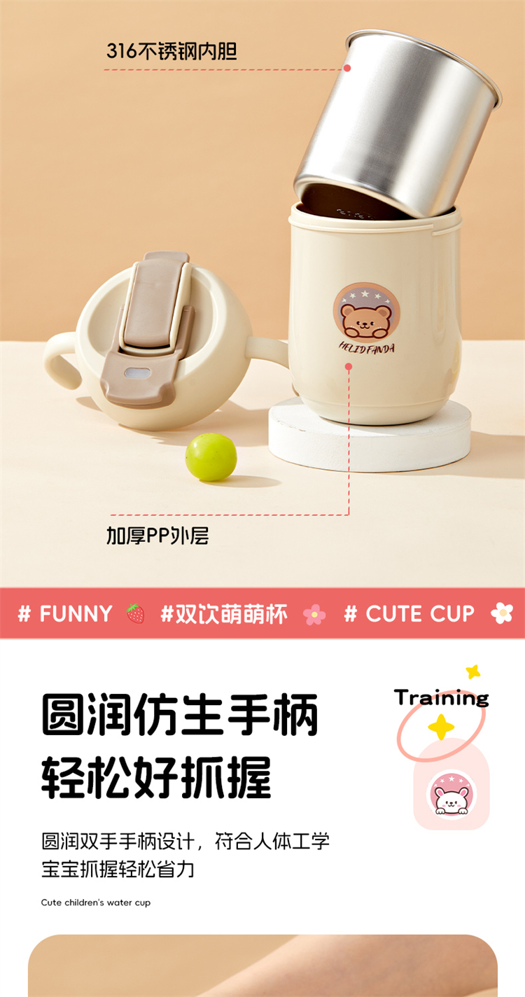 婴侍卫(BBG) 316不锈钢儿童两用手柄水杯360ml A08891-C1 15*9*13cm 随机(单位:个)