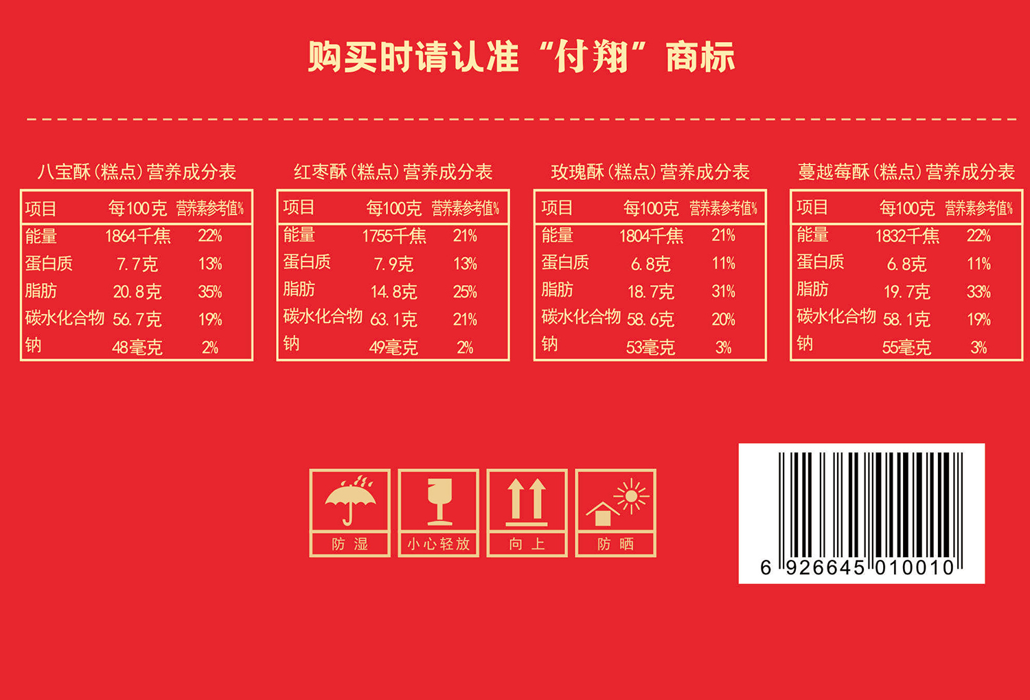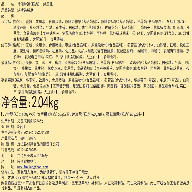 付翔 手工炉馍 感恩礼(60g*34粒) 2.04kg(八宝酥+红枣酥+玫瑰酥+蔓越莓酥) 混合 混色(单位:盒 )