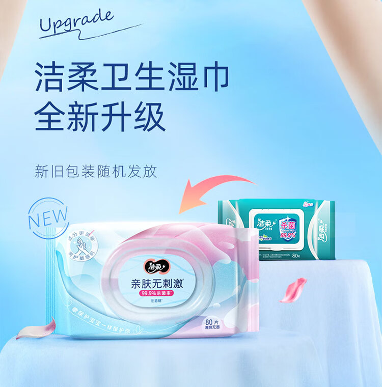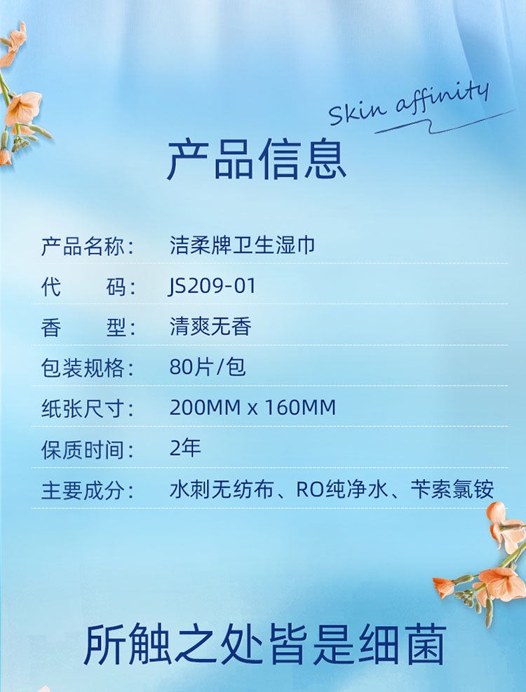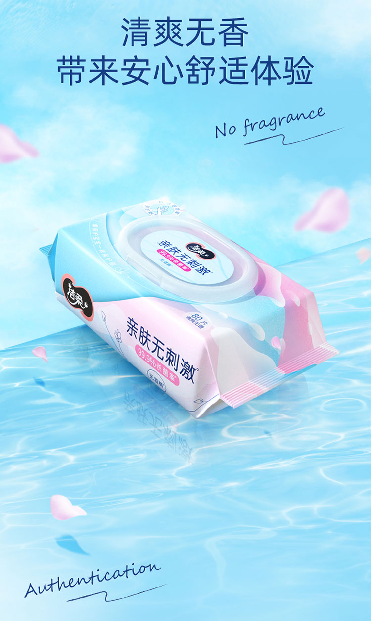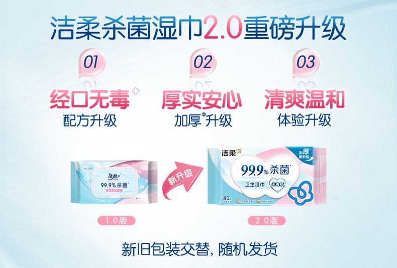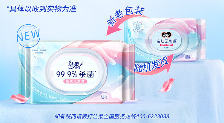 洁柔(C&S) 杀菌湿巾 JS236-04E-1B+QPD 80片 蓝粉色(单位:包)