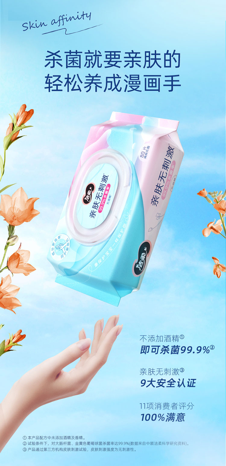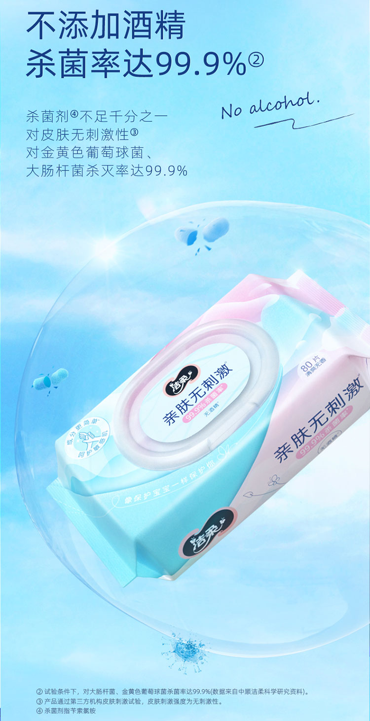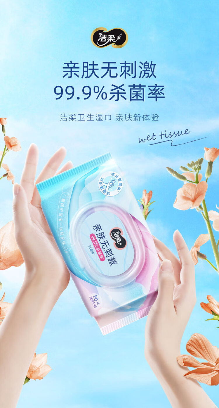 洁柔(C&S) 杀菌湿巾 JS236-04E-1B+QPD 80片 蓝粉色(单位:包)