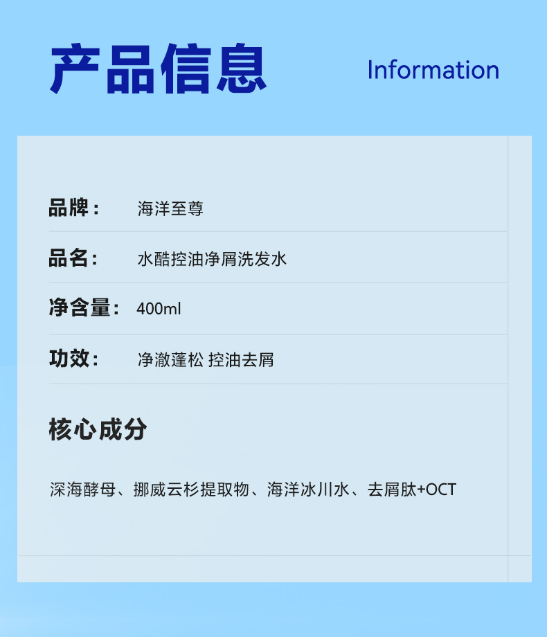 海洋至尊(HAIYANGZHIZUN) 水酷控油净屑洗发水 男友礼物 400ml 白色(单位:瓶)