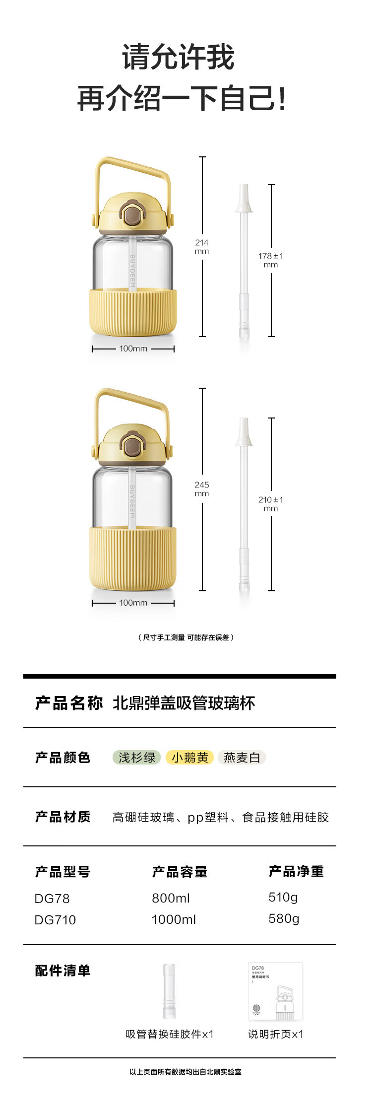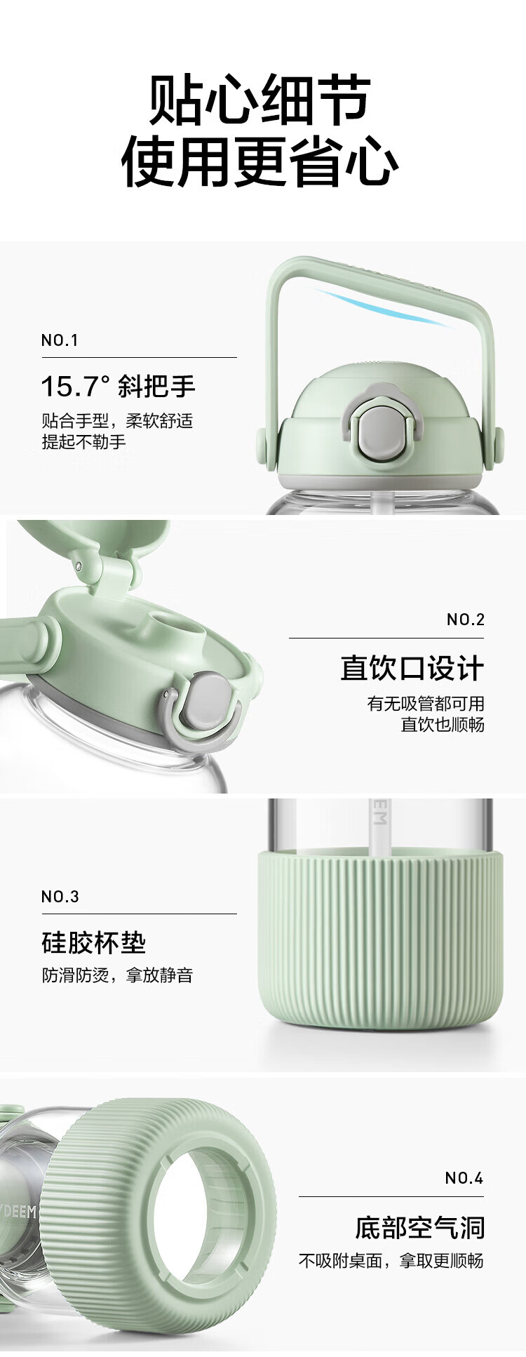 北鼎(Buydeem) 吸管吨吨杯 DG710/A1 1000ML 浅杉绿(单位:个)