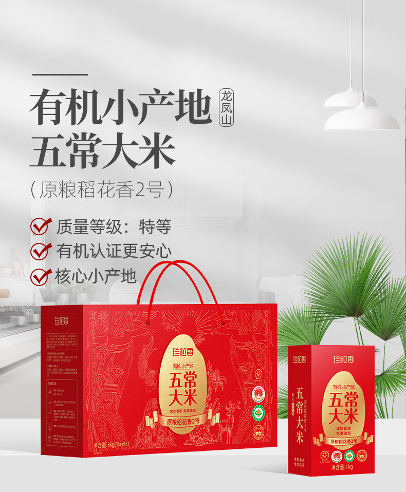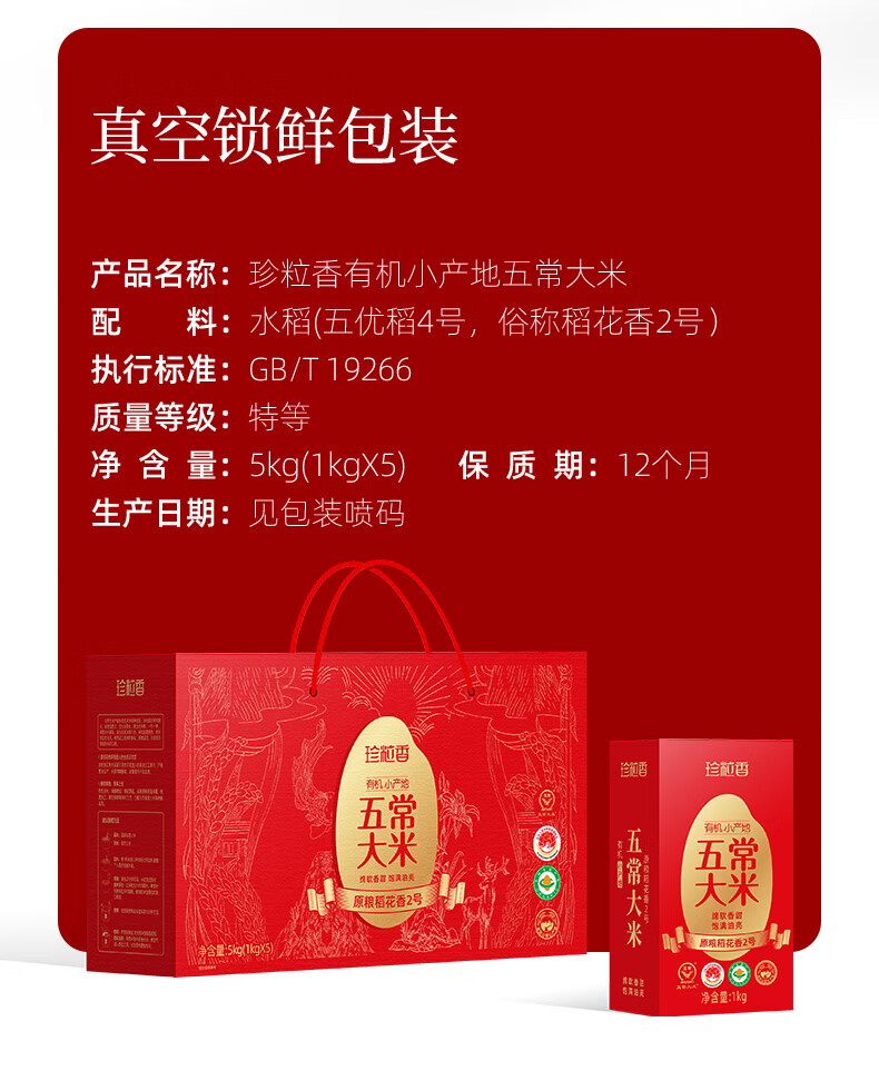 珍粒香 五常大米 经典有机小产地礼盒 5kg(1kg*5盒) 混色(单位:盒)