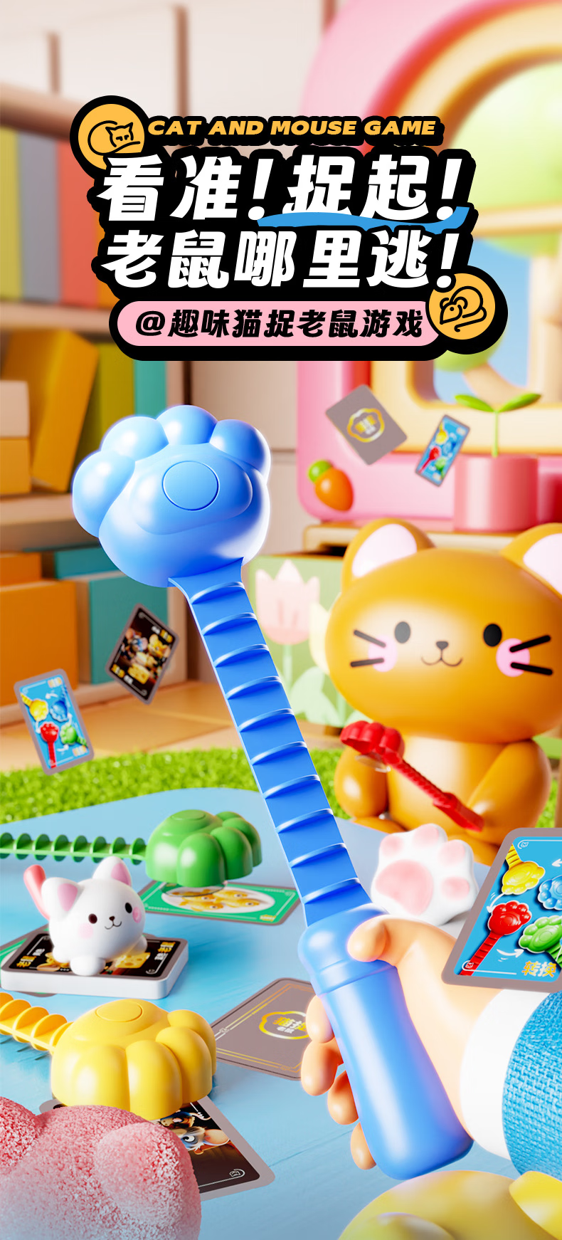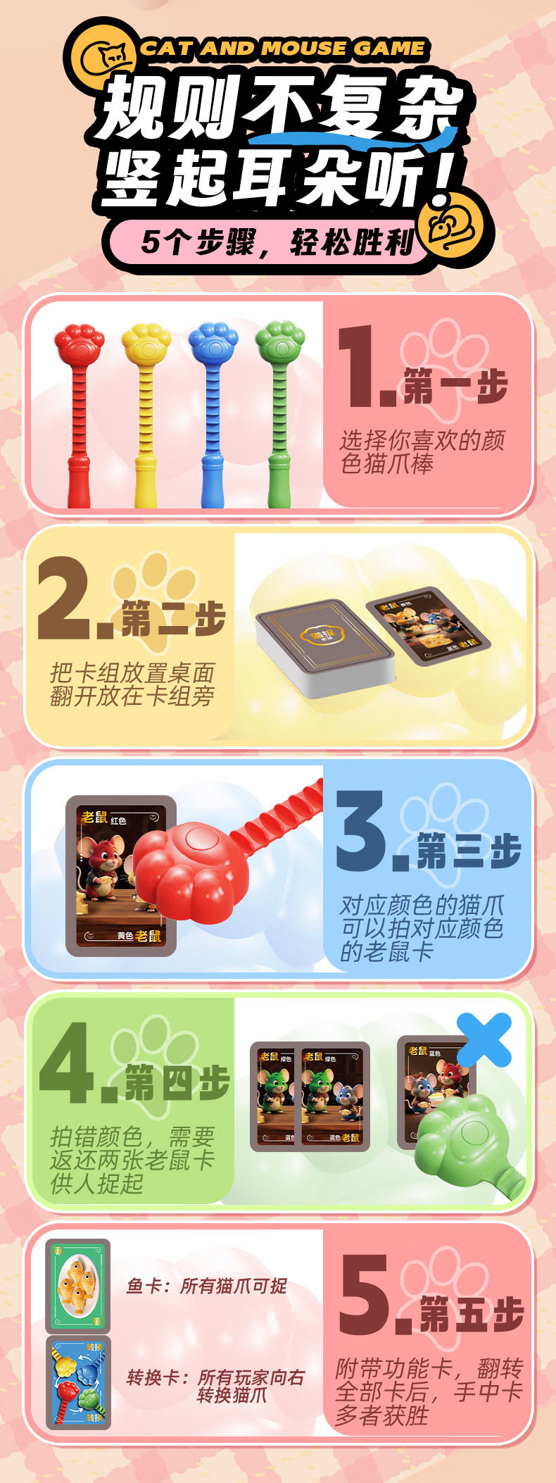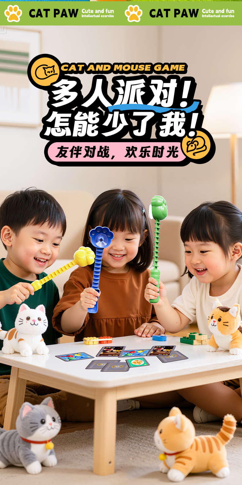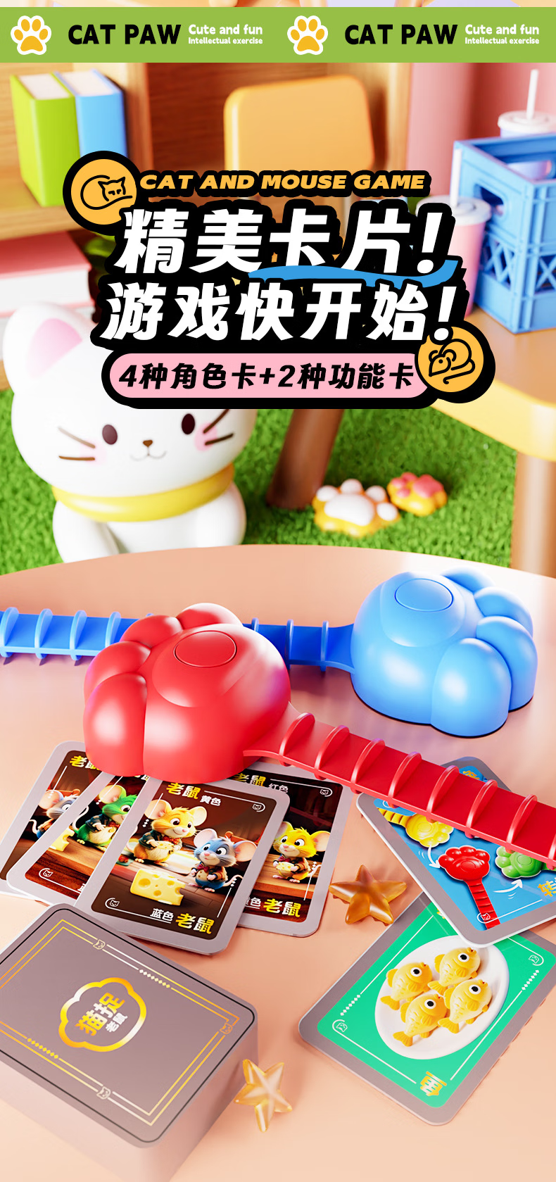 钧捷 猫抓老鼠 家庭聚会亲子互动思维训练儿童益智桌游1组 四人版/4爪+56卡片+惩罚盘电商盒 100g 混色(单位:组)