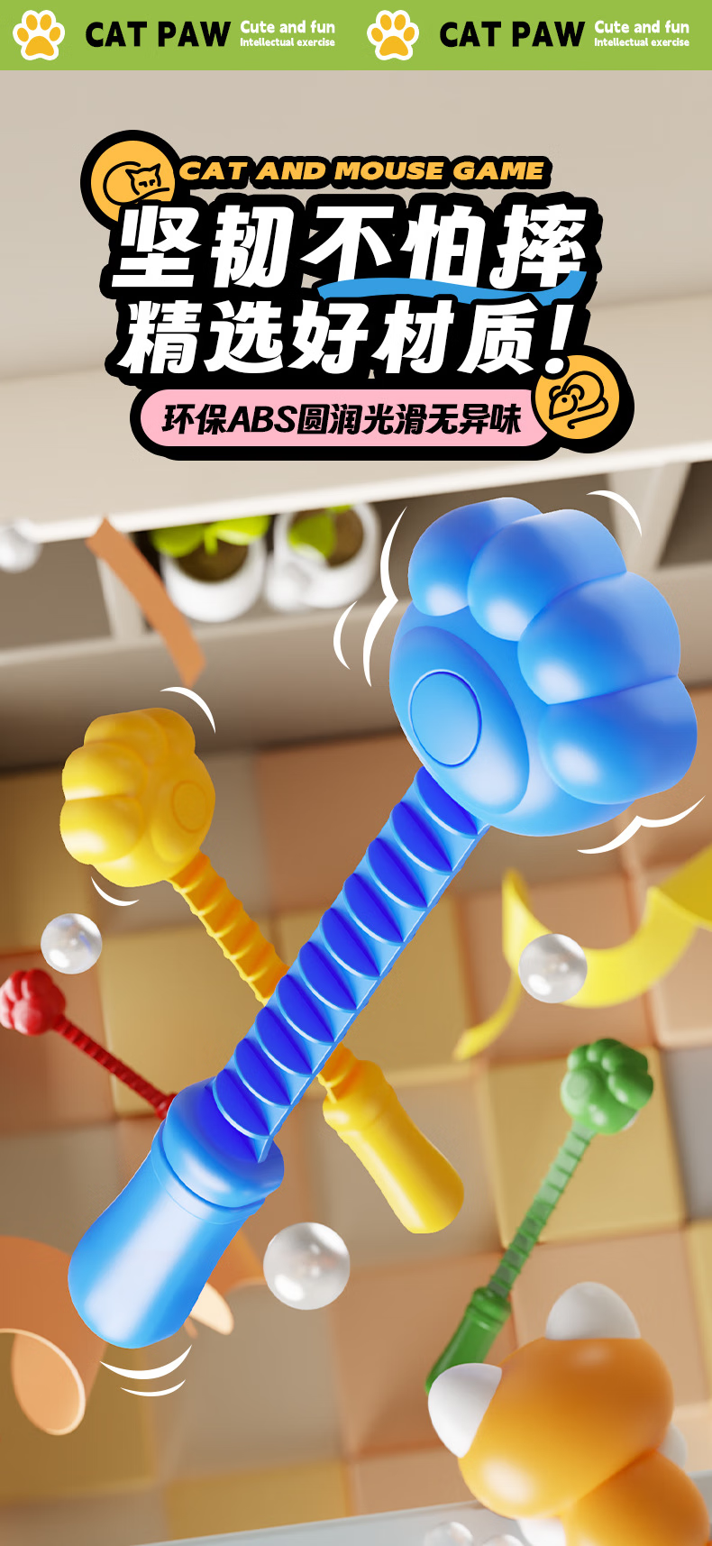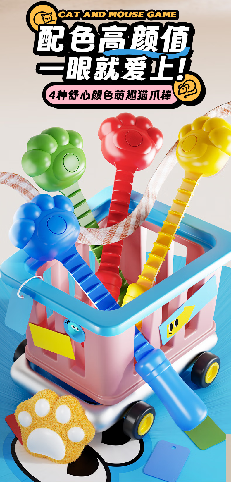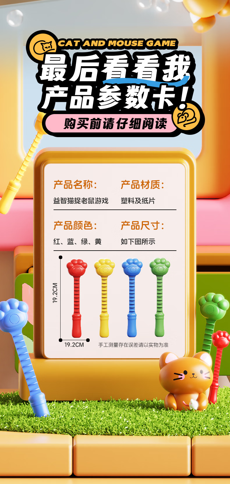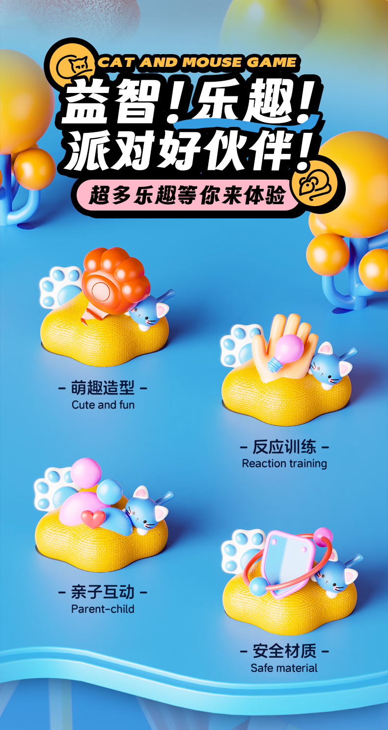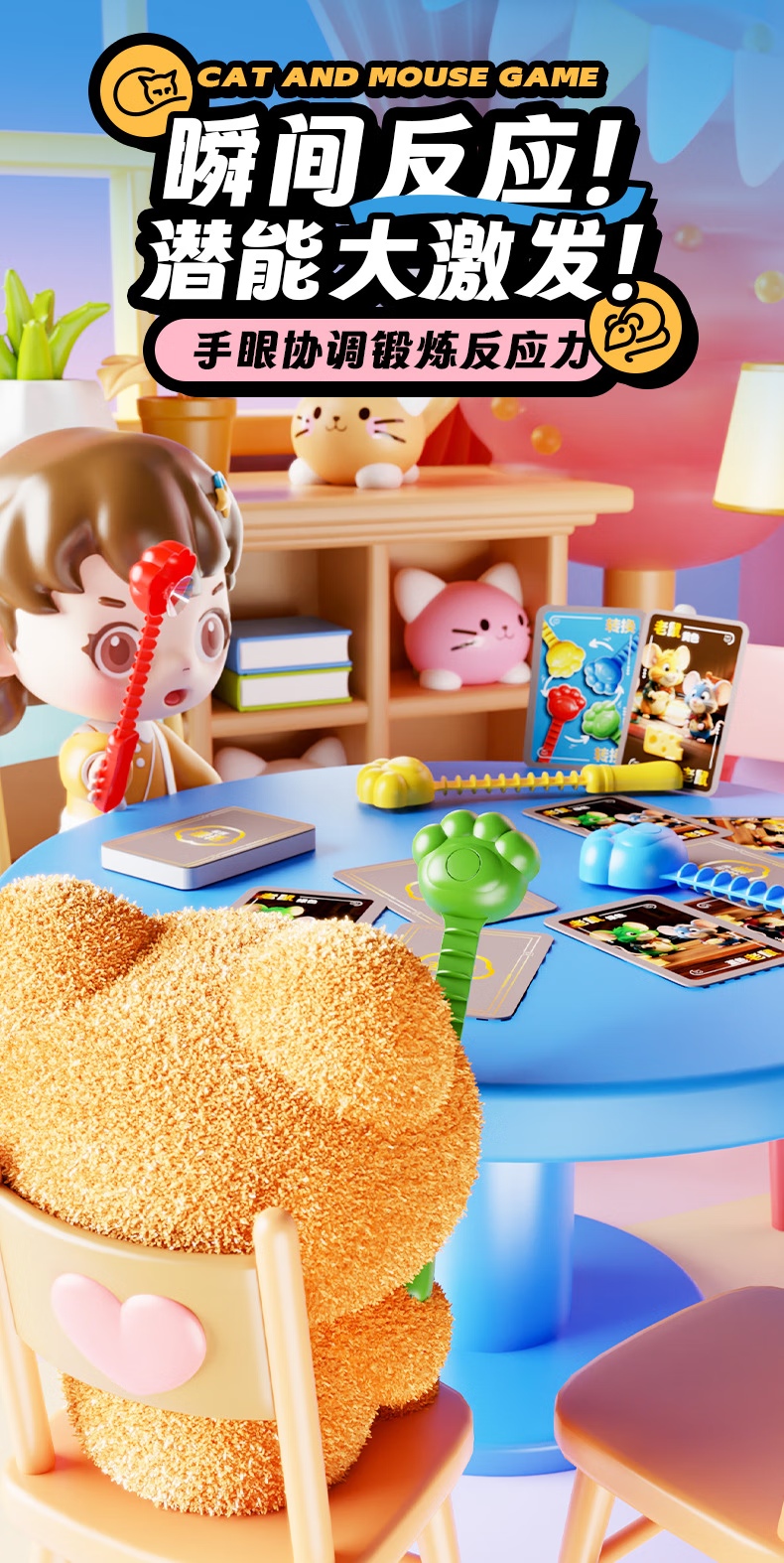 钧捷 猫抓老鼠 家庭聚会亲子互动思维训练儿童益智桌游1组 四人版/4爪+56卡片+惩罚盘电商盒 100g 混色(单位:组)