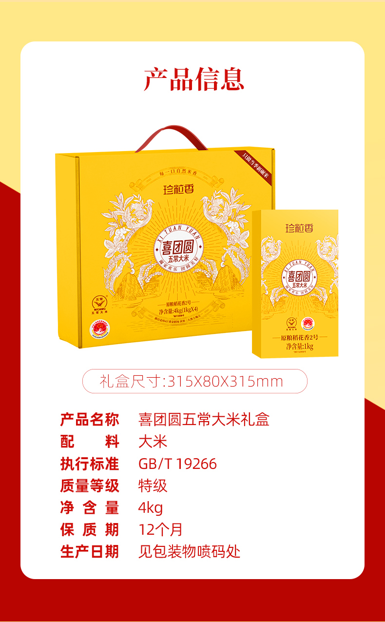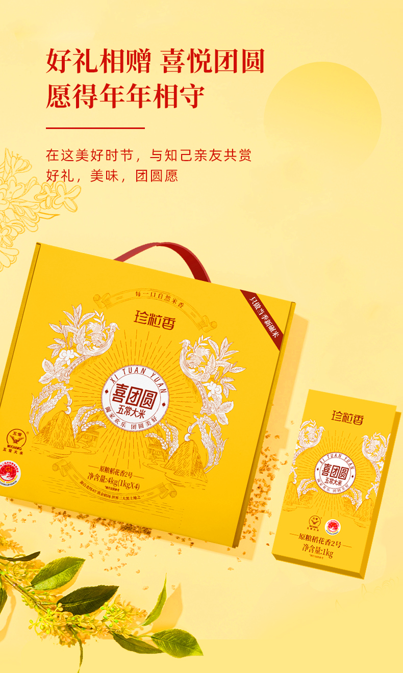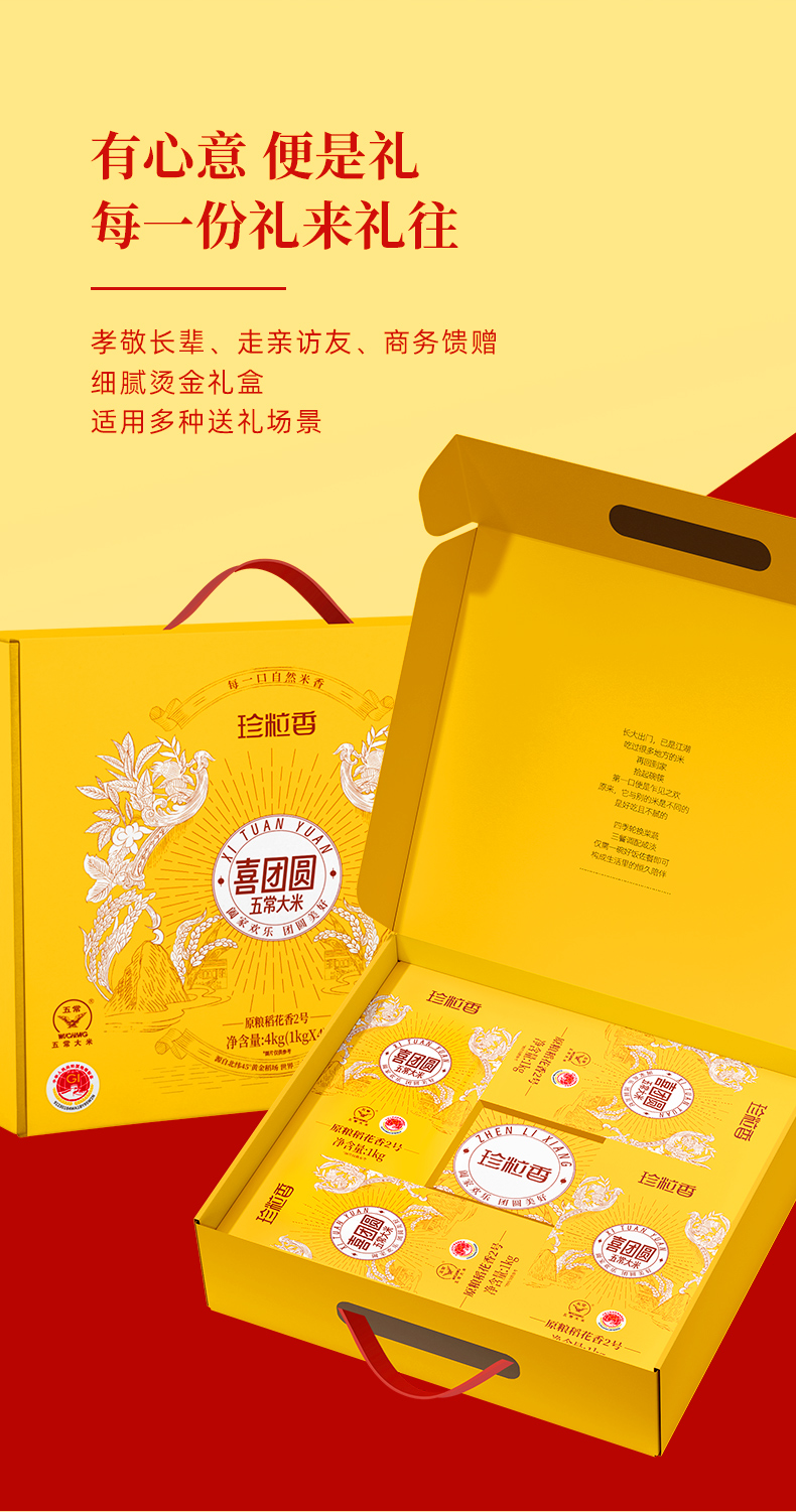 珍粒香 五常大米稻花香 喜团圆礼盒 4kg(1kg*4盒) 混色(单位:盒)