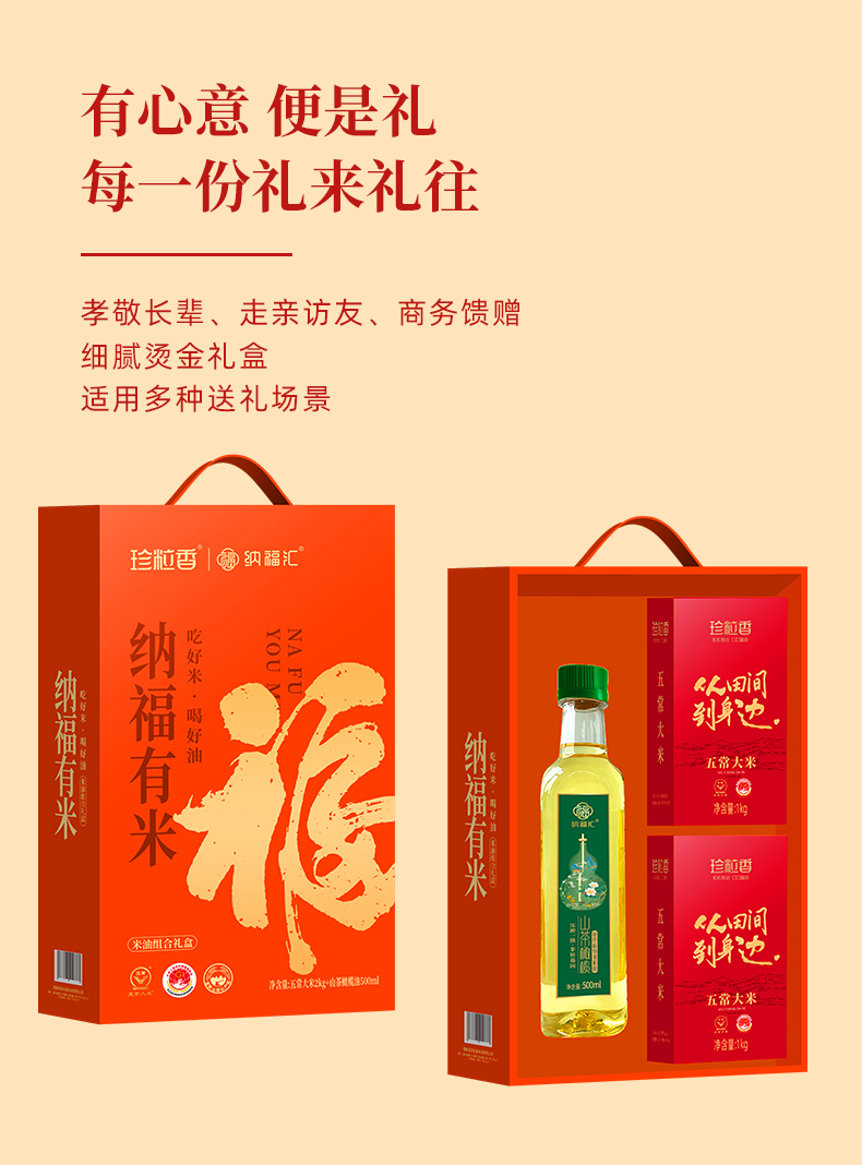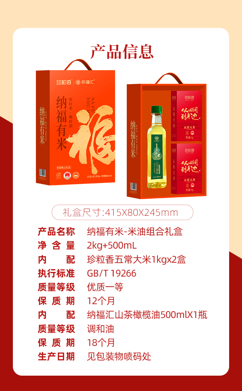 珍粒香 好米好油 纳福有米组合 2kg米+500ml油礼盒 混色(单位:盒)