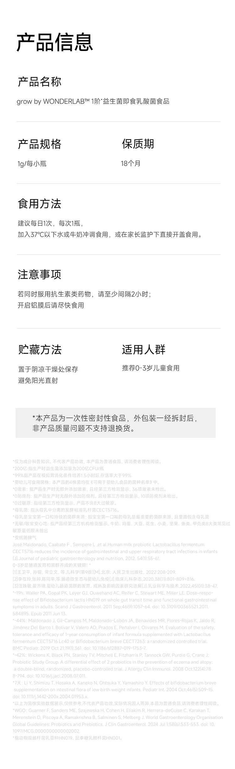 WonderLab 1阶益生菌 0-3岁儿童益生菌 1g*30瓶/盒 鹅仔黄(单位:盒)