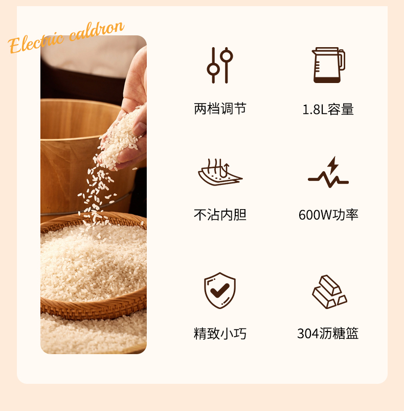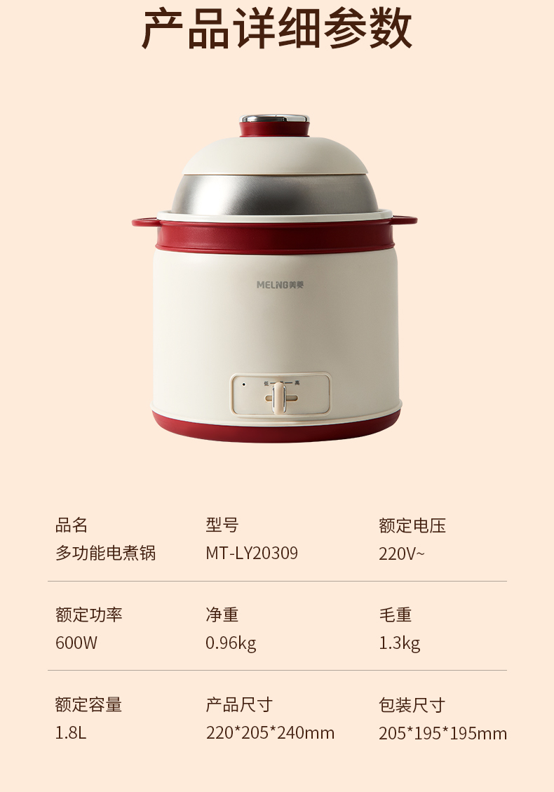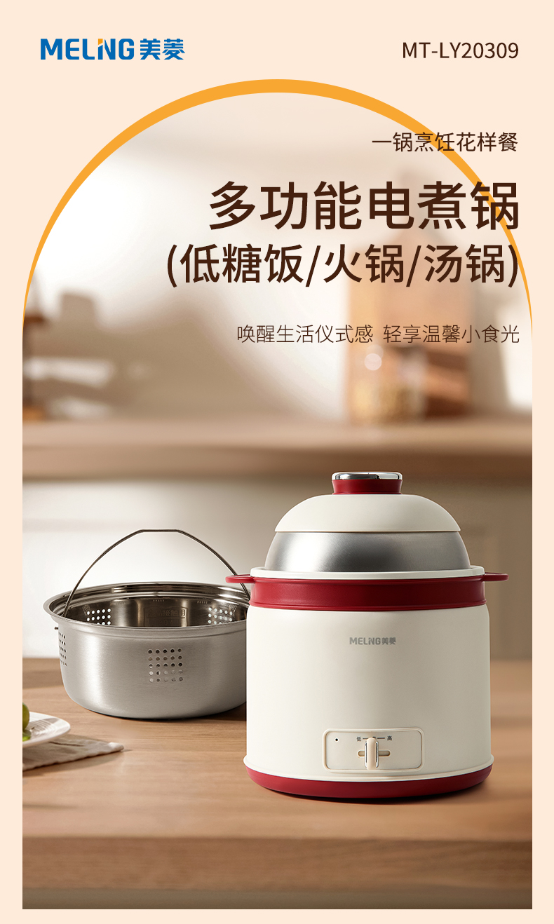 美菱(MeiLing) 多功能电煮锅 迷你电饭煲 MT-LY20309 1.8L 象牙色(单位:台)