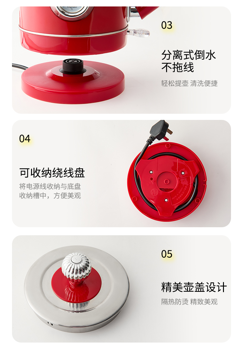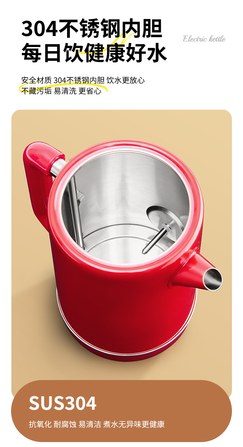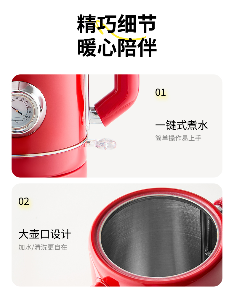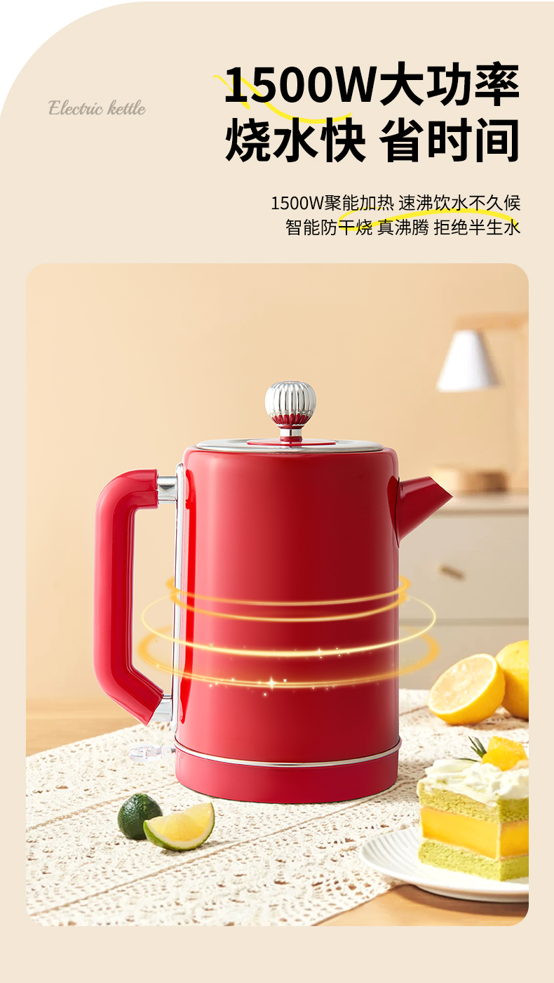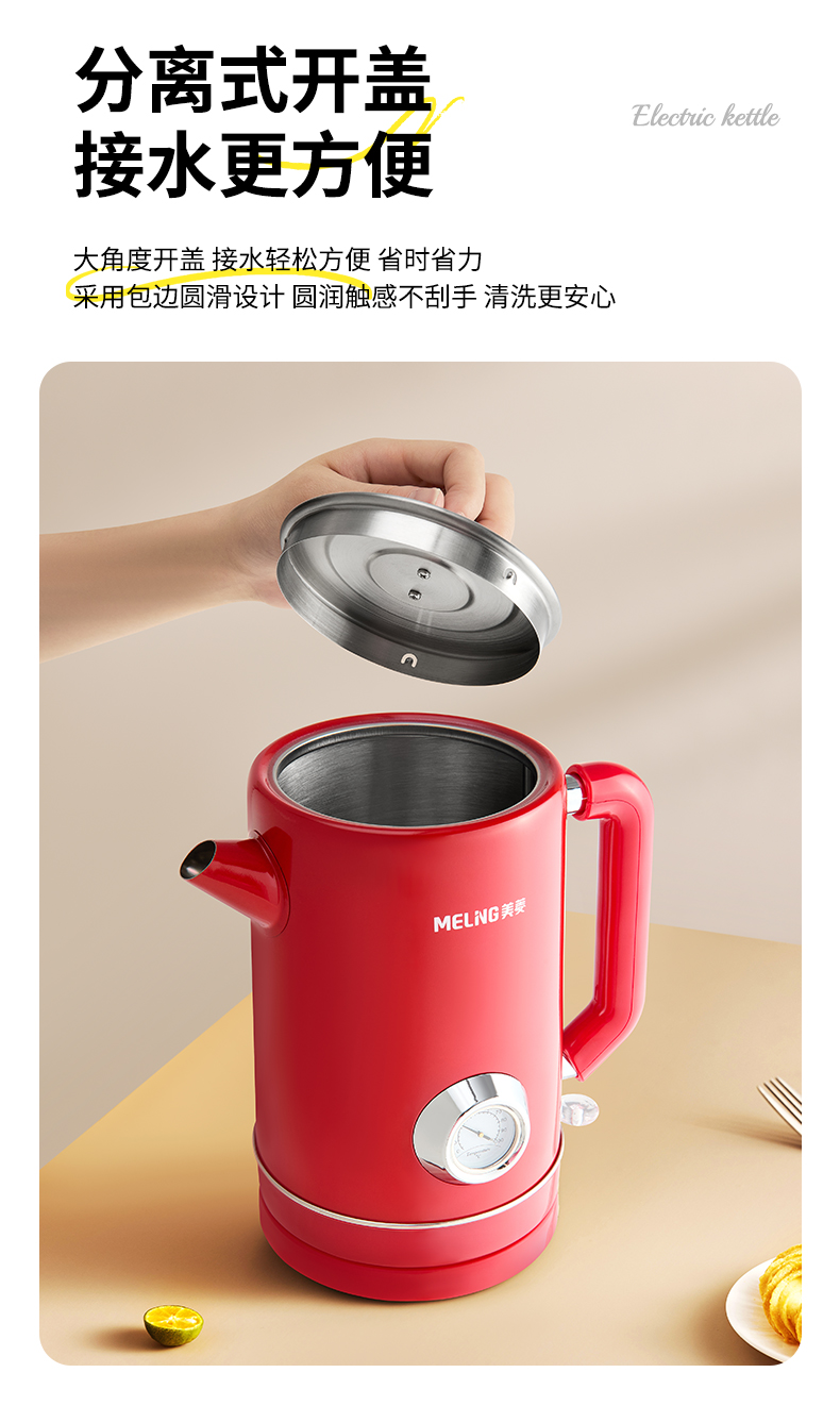 美菱(MeiLing) 家用带温度显示复古电水壶 烧水壶 MH-L18701 1.8L 红色(单位:台)