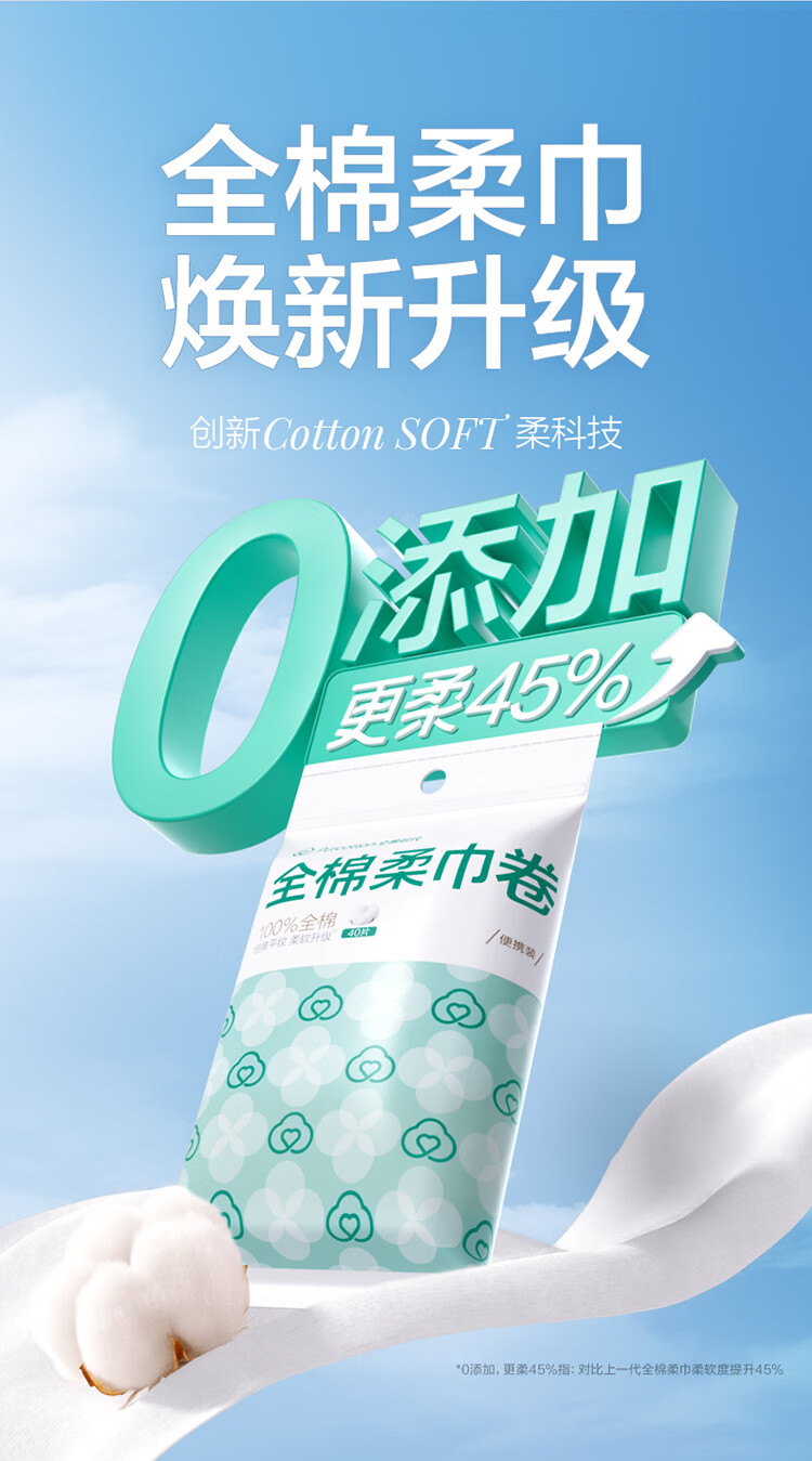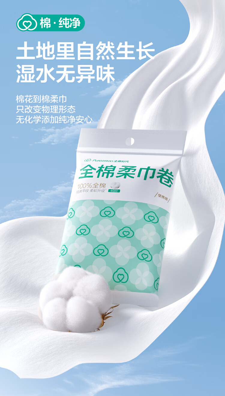 全棉时代 棉柔卷 便携装全棉 40片/包*120包 白色(单位:箱)