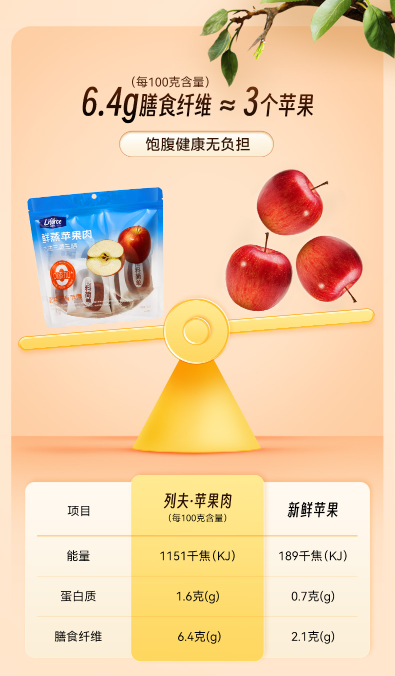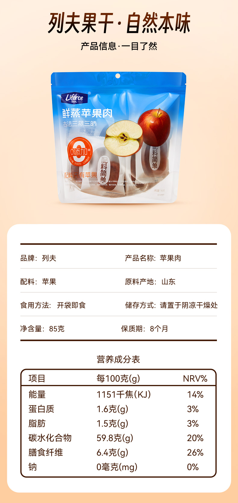 列夫 鲜蒸苹果肉 果干 软糯可口 85g 枫叶色(单位:袋)
