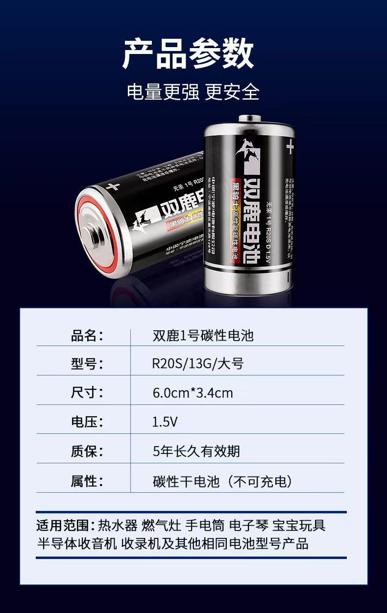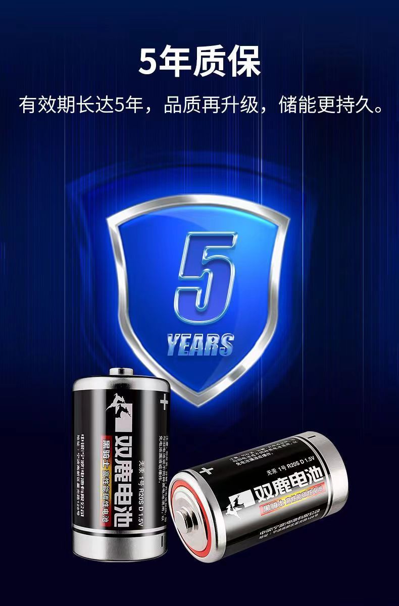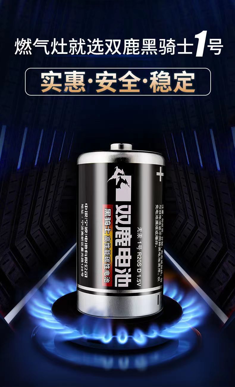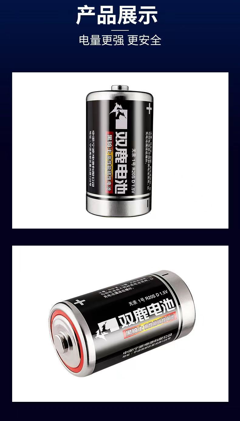 双鹿电池 黑骑士碳性电池 1号电池 24粒/盒 3850mAh 黑色(单位:盒)