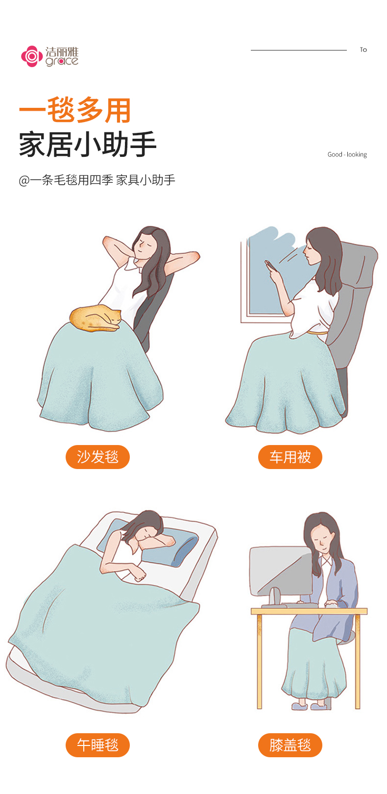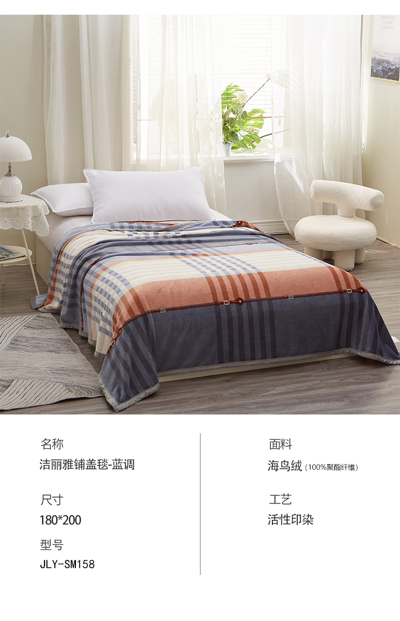 洁丽雅(Grace) 抗静电铺盖毯-蓝调 JLY-SM158 180x200cm 蓝色(单位:床)