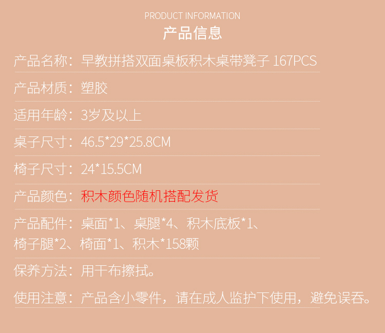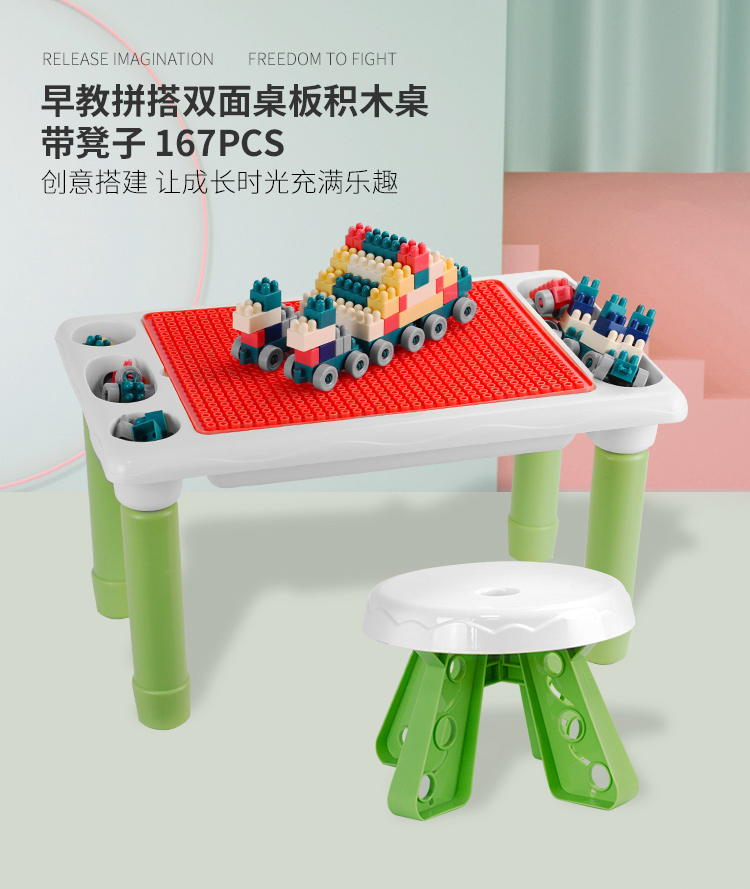 婴侍卫(BBG) 早教拼搭双面桌板积木桌167PCS带凳子 5068 46.5*29*25.8cm 混色(单位:套)