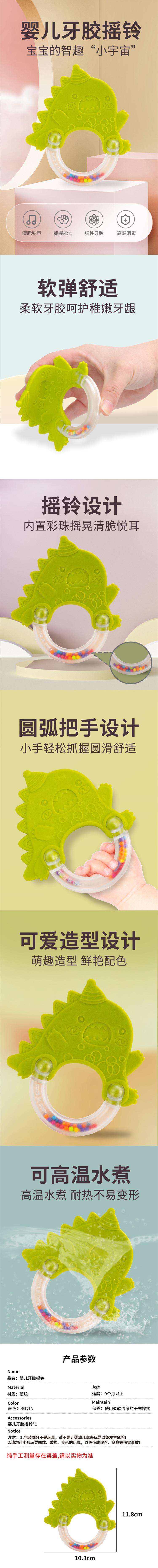 婴侍卫(BBG) 恐龙牙胶摇铃 SL94801-50 10.3*11.8cm 恐龙(单位:个)