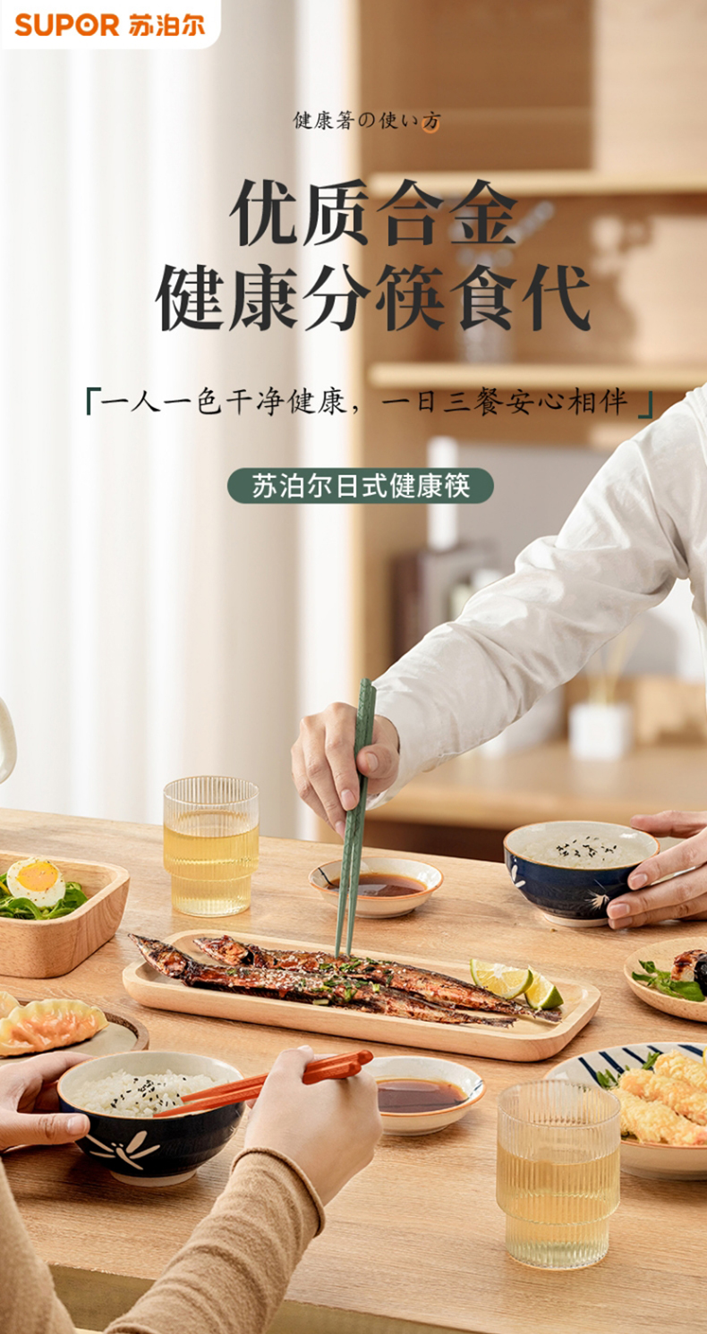 苏泊尔(SUPOR) 日式健康筷 TK2059E 5双装 分色(单位:组)