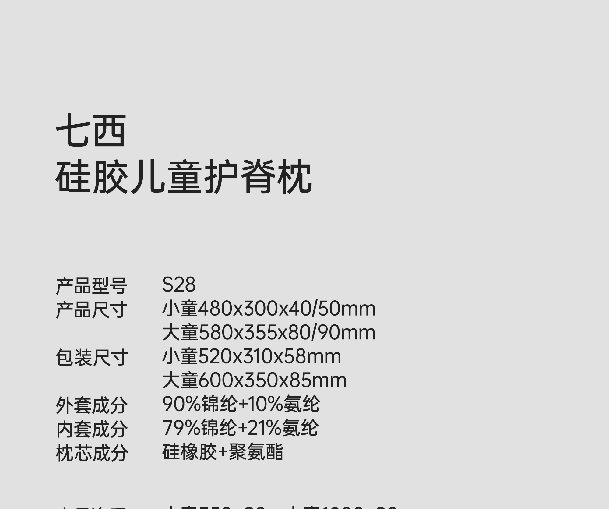 七西(7C) 硅胶儿童护脊枕 7C-S28 580*355*80/90mm 活力黄(单位:个)