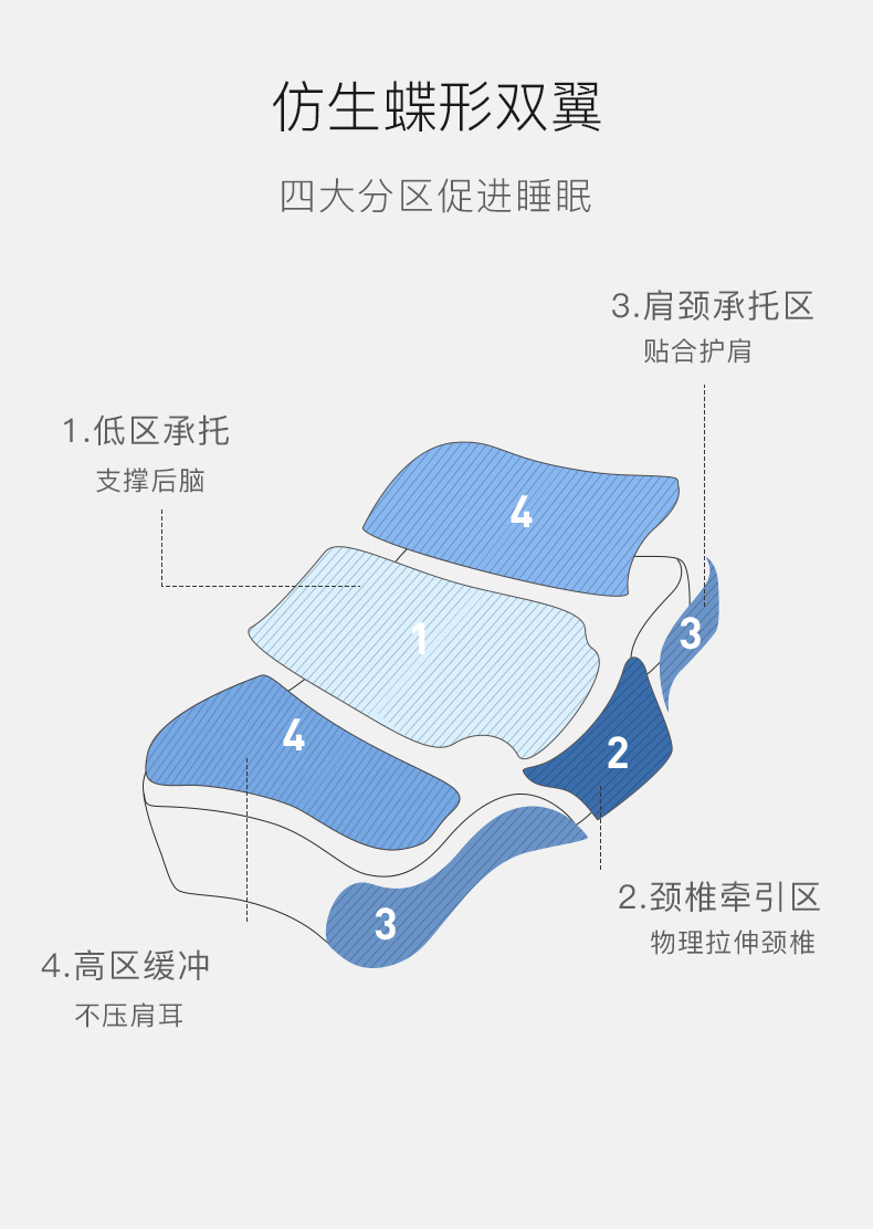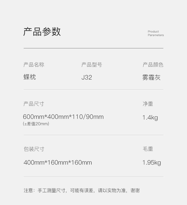 七西(7C) 蝶枕 7C-J32 600*400*110/90mm 灰色(单位:个)