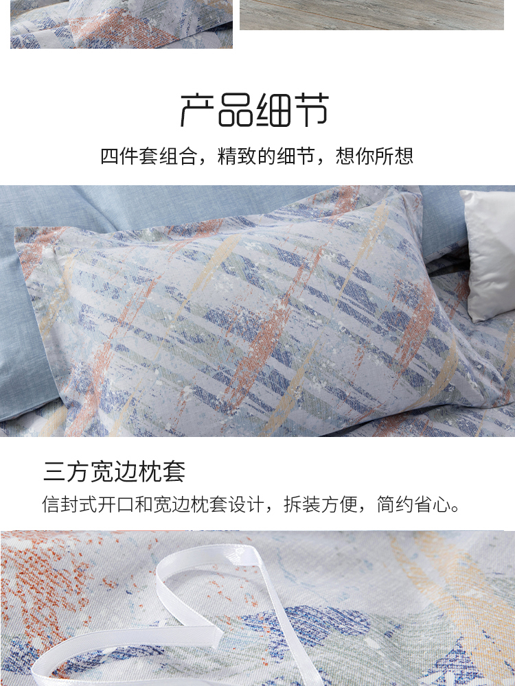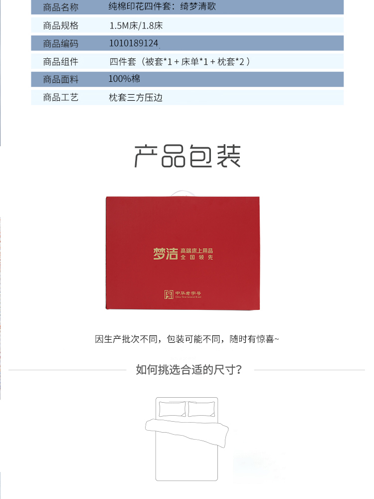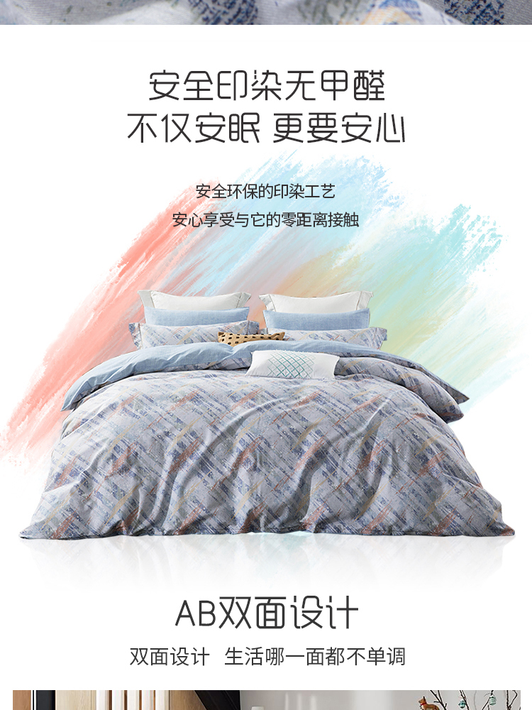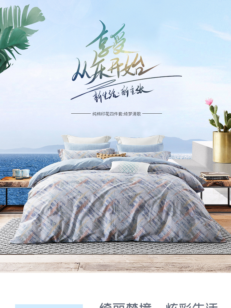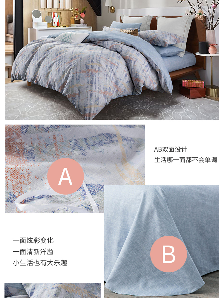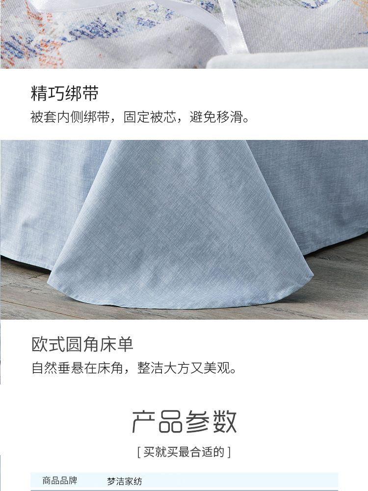 梦洁家纺 四件套 40s纯棉印花绮梦清歌 200*230cm 淡蓝色(单位:套)