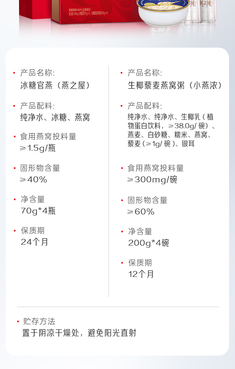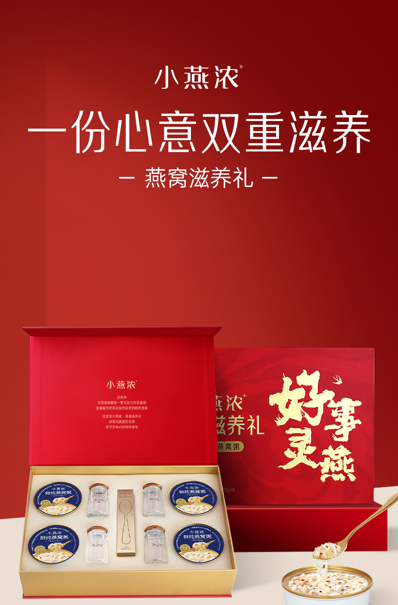 燕之屋 小燕浓燕窝滋养礼 (四粥四燕) 燕窝粥200g*4+鲜炖燕窝70g*4 红色(单位:盒)