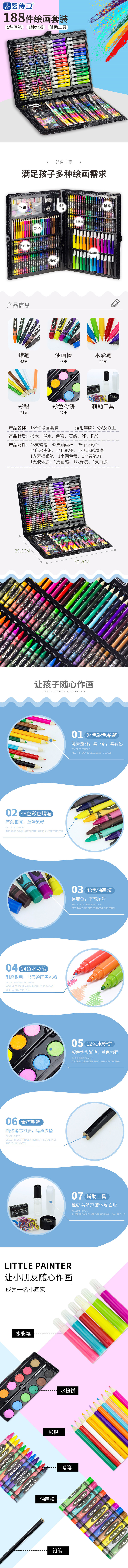 婴侍卫(BBG) 儿童绘画套装188PCS A199540 39.2*29.2cm 混色(单位:盒)