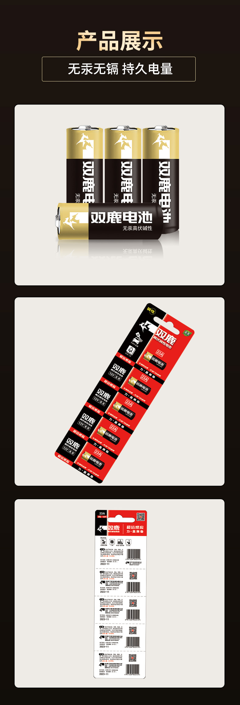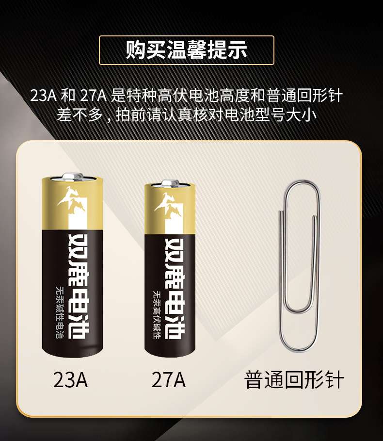 双鹿电池 碱性电池 23A 5节/卡 40mah 红色(单位:卡)