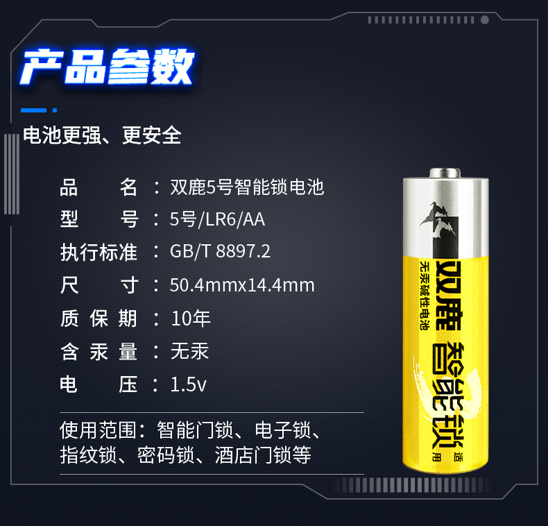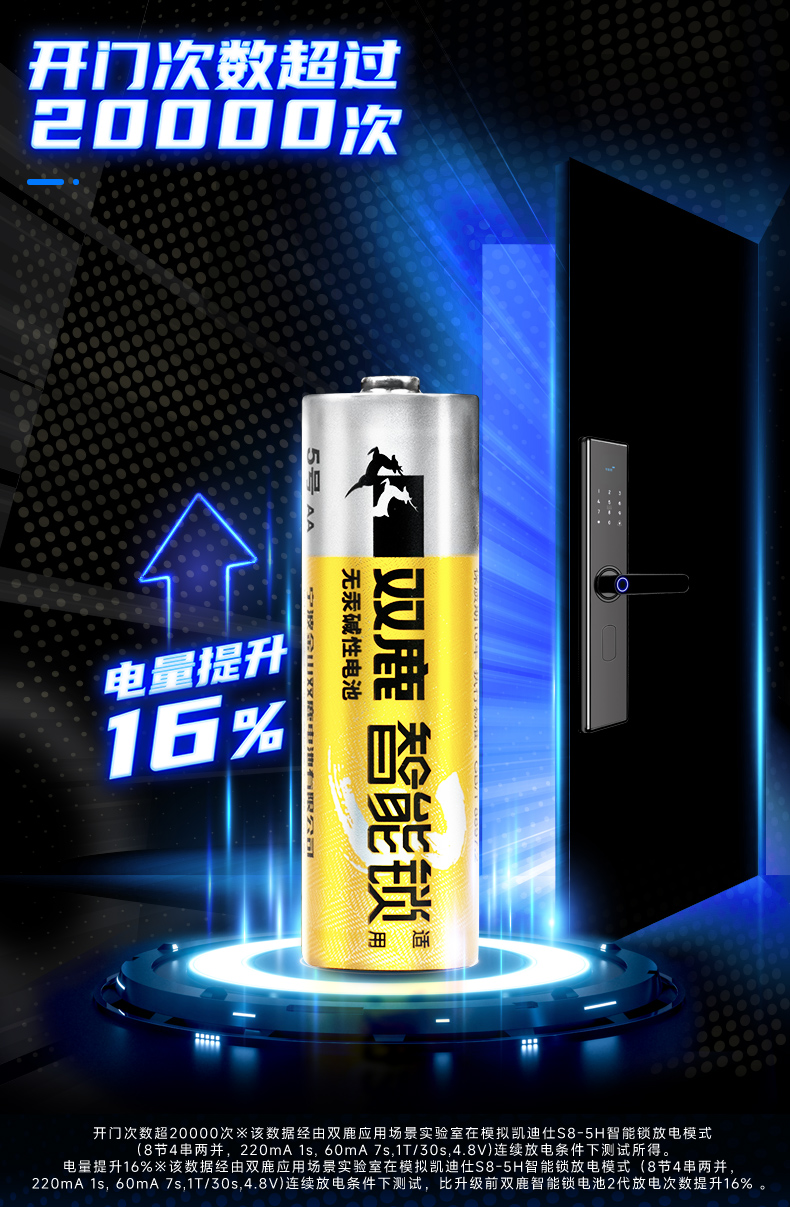 双鹿电池 碱性电池 5号智能锁电池 4粒/卡 黑色(单位:卡)