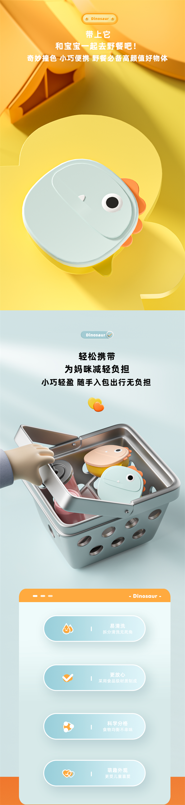 婴侍卫(BBG) 儿童便携饭盒 XTQ-6342 14*14*6cm 桔色(单位:个)