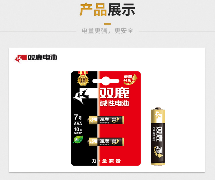 双鹿电池 碱性电池 7号电池 1300mAh 2粒/卡 2卡 黑色(单位:卡)