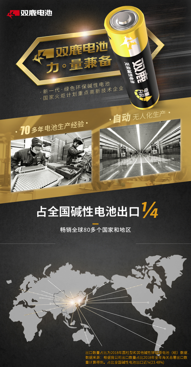 双鹿电池 碱性电池 7号/LR03/AAA 1300mAh 40粒/盒 黑色(单位:盒)
