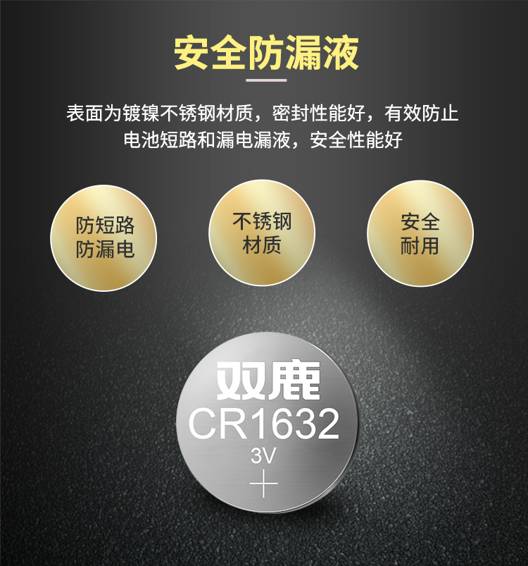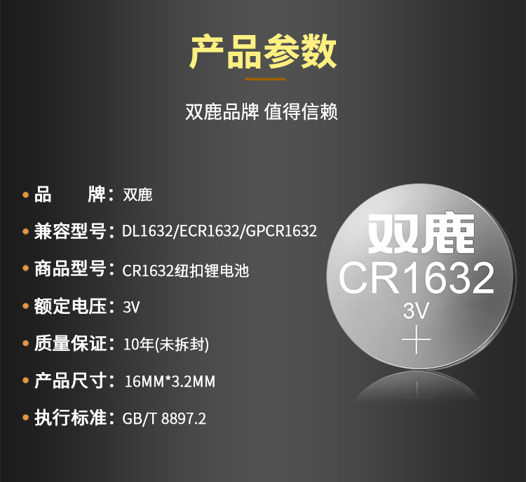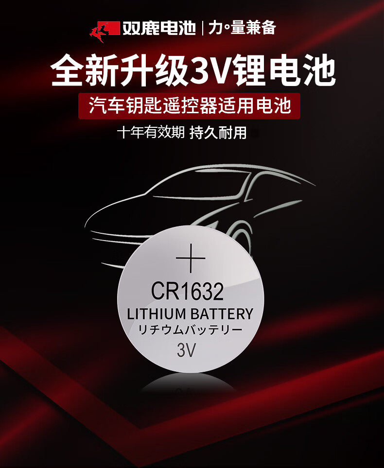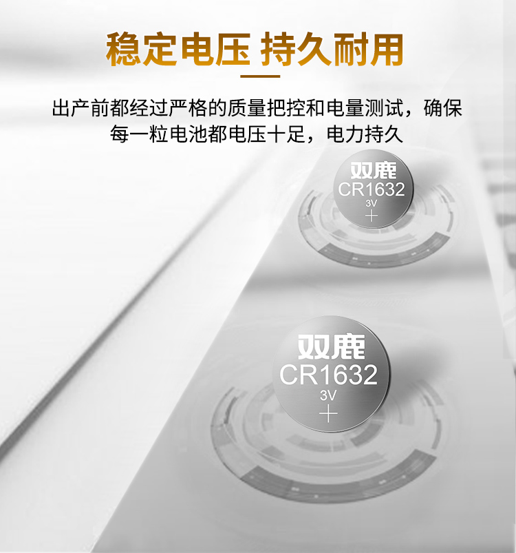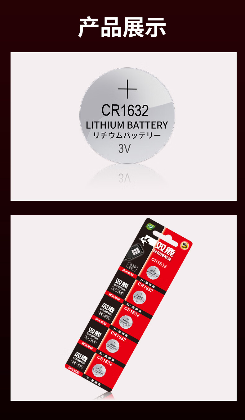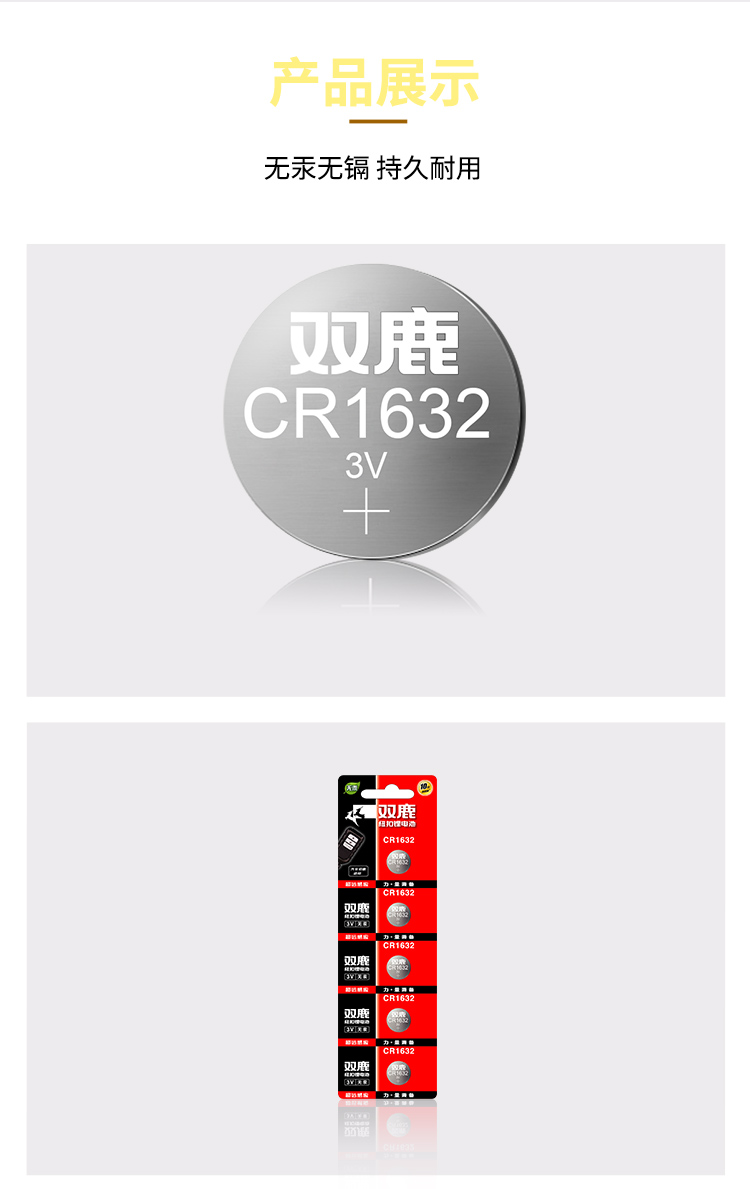 双鹿电池 纽扣电池 CR1632 130mah 5节/卡 黑色(单位:卡)