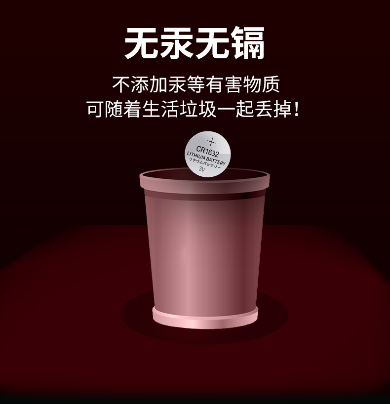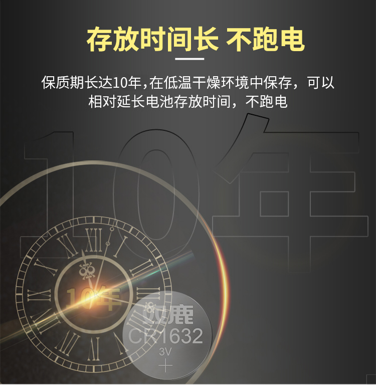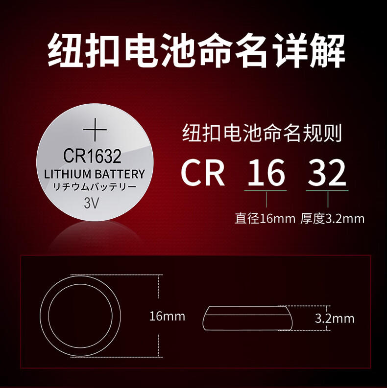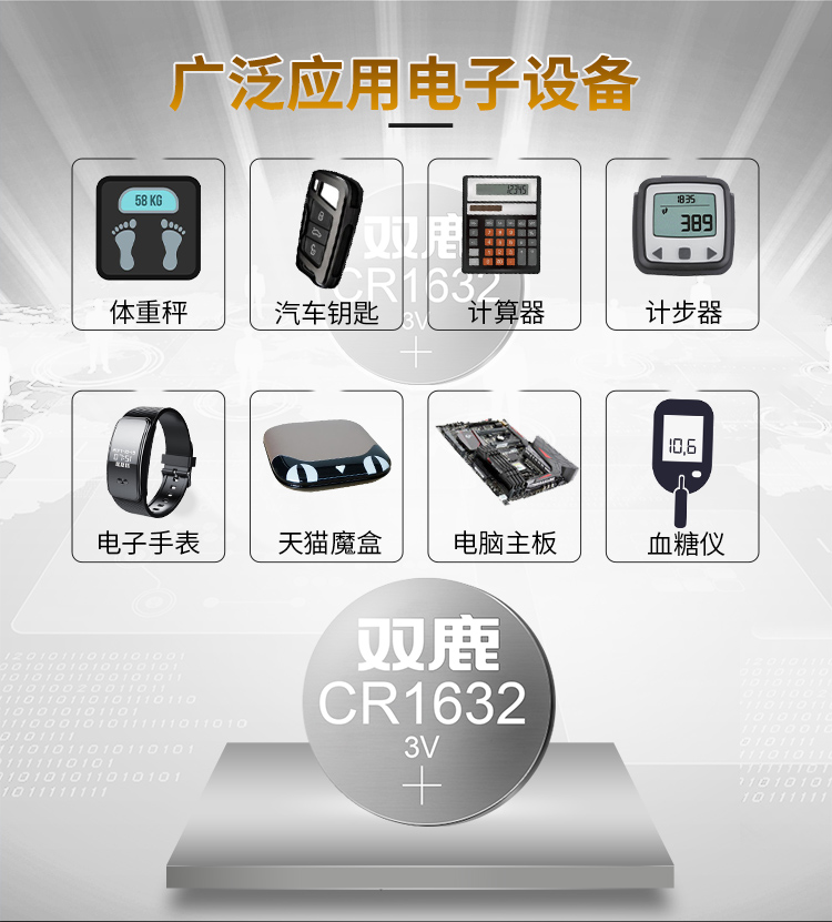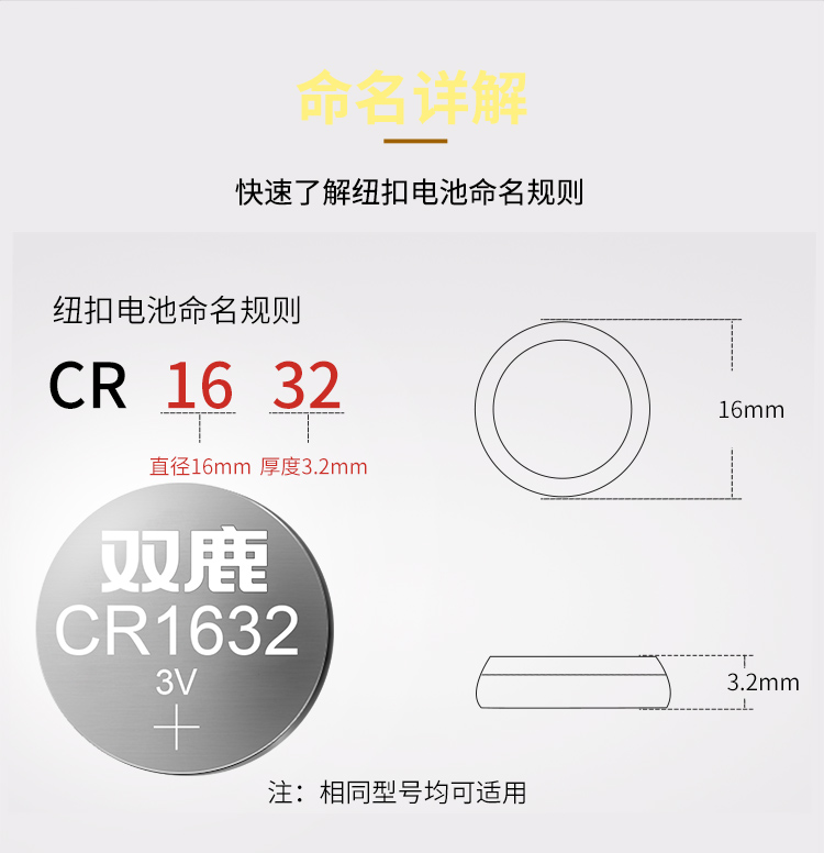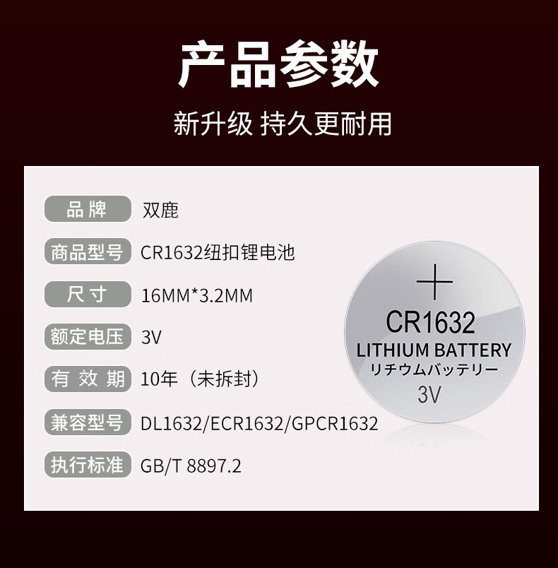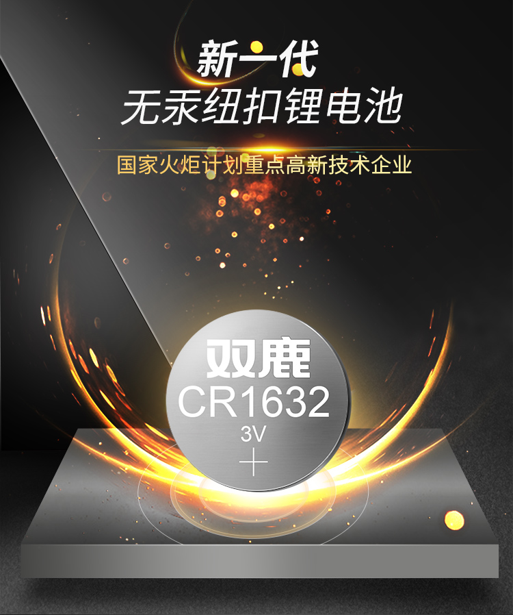 双鹿电池 纽扣电池 CR1632 130mah 5节/卡 黑色(单位:卡)