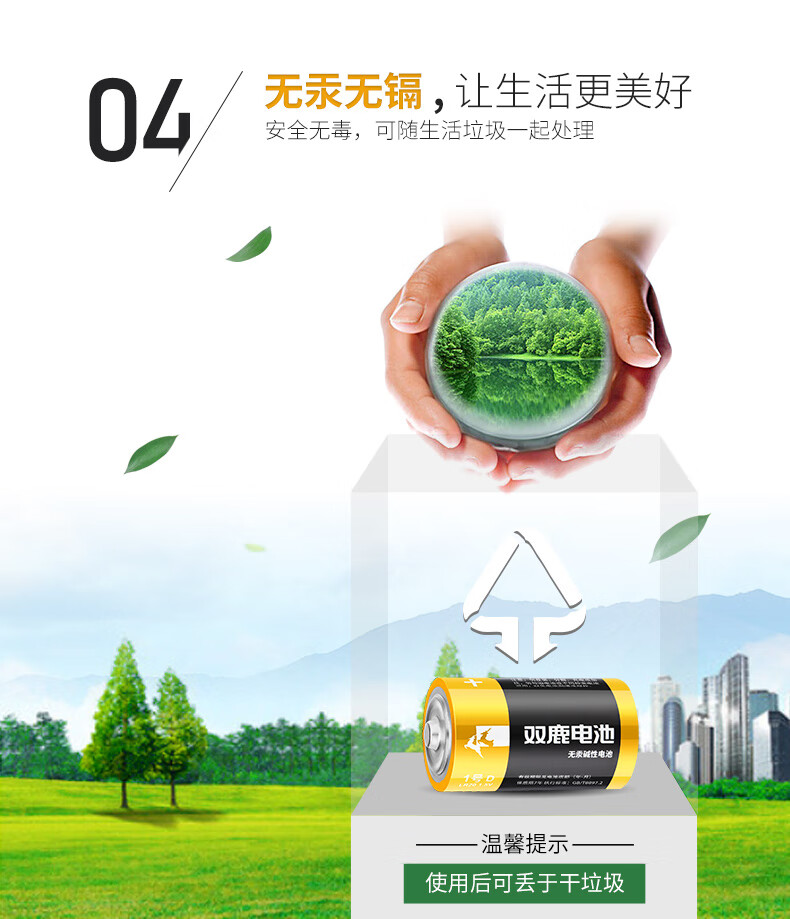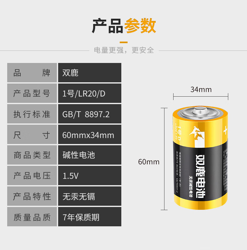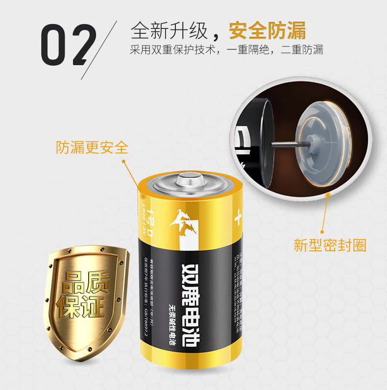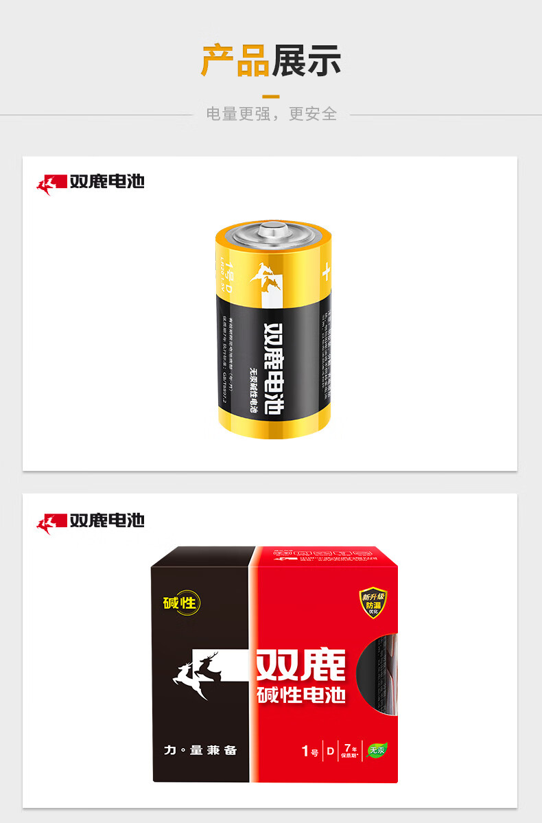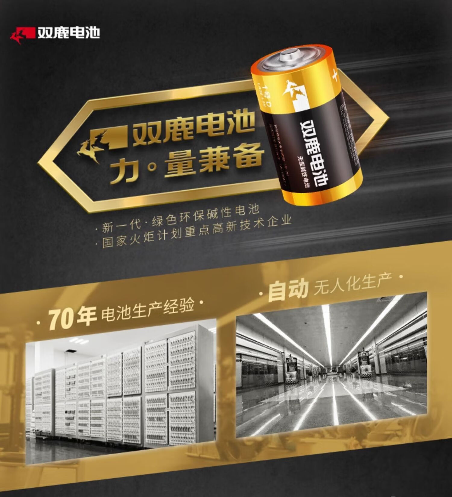 双鹿电池 碱性电池 1号 1粒/卡 2卡 黑色(单位:卡)