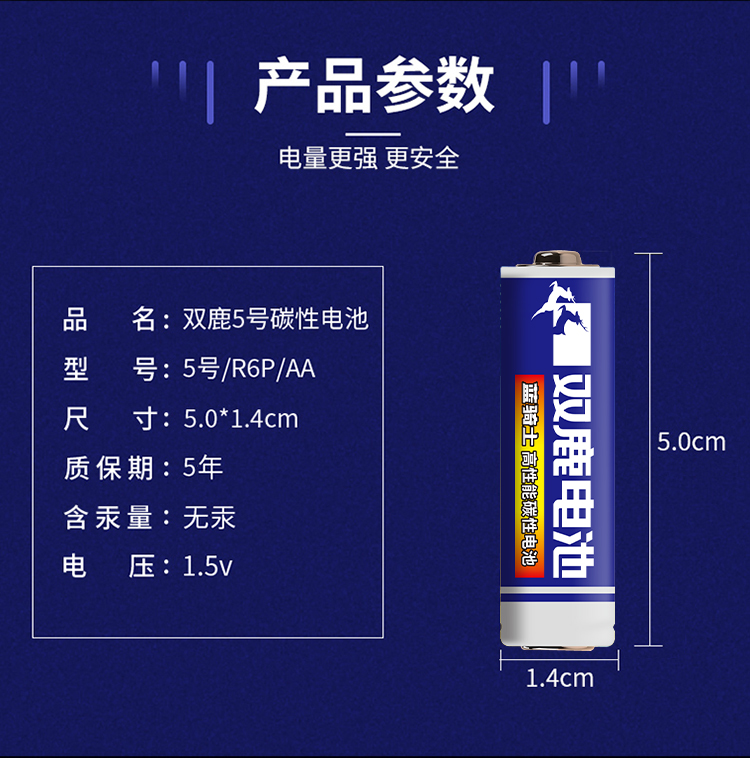 双鹿电池 碳性电池 5号/R6P/AA 40粒 黑色(单位:盒)