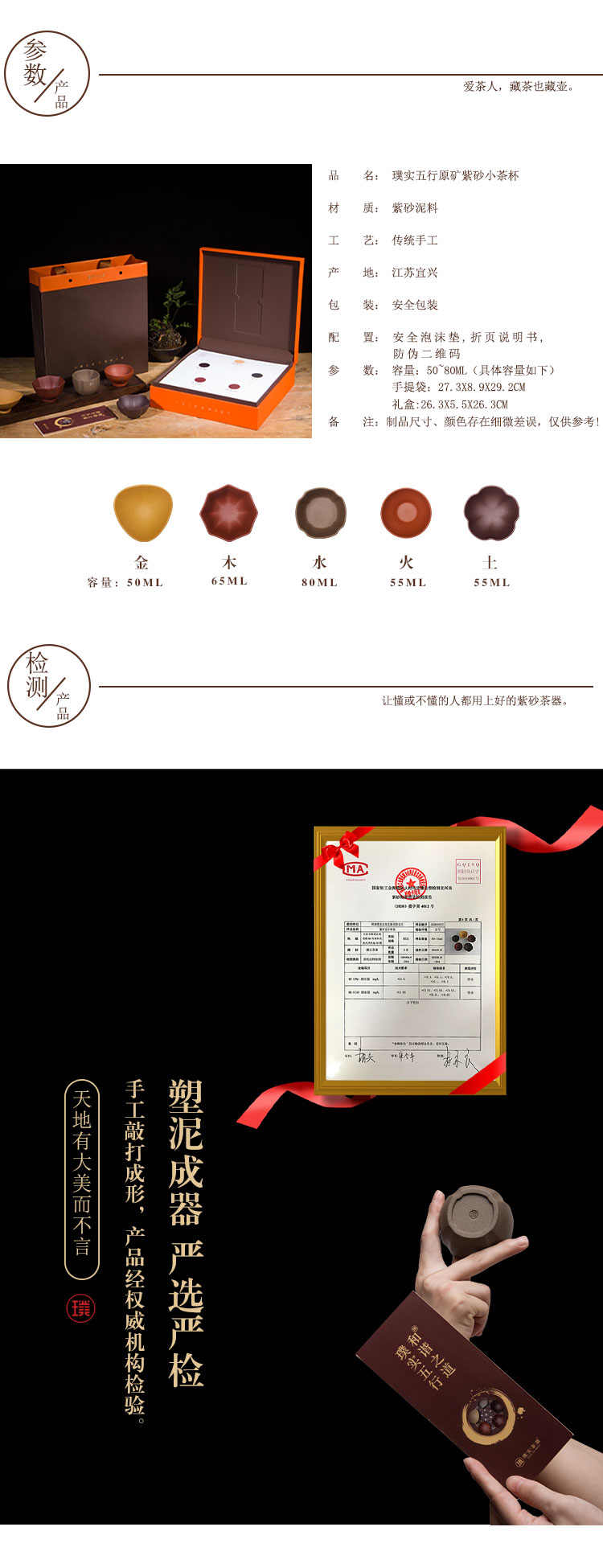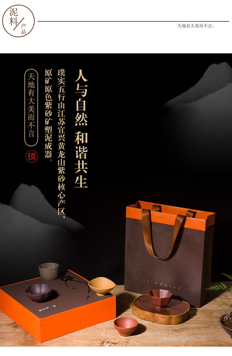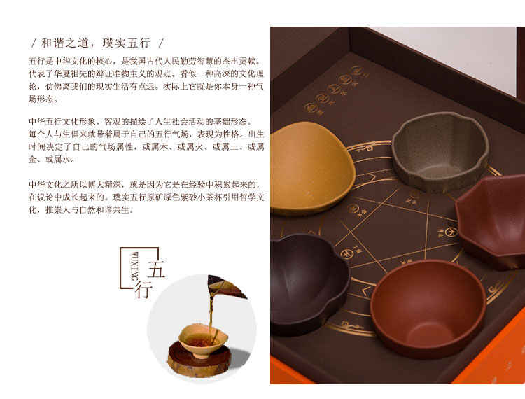 璞实茶器 小茶杯套装 五行 5个/50ml-80ml 紫砂(单位:套)