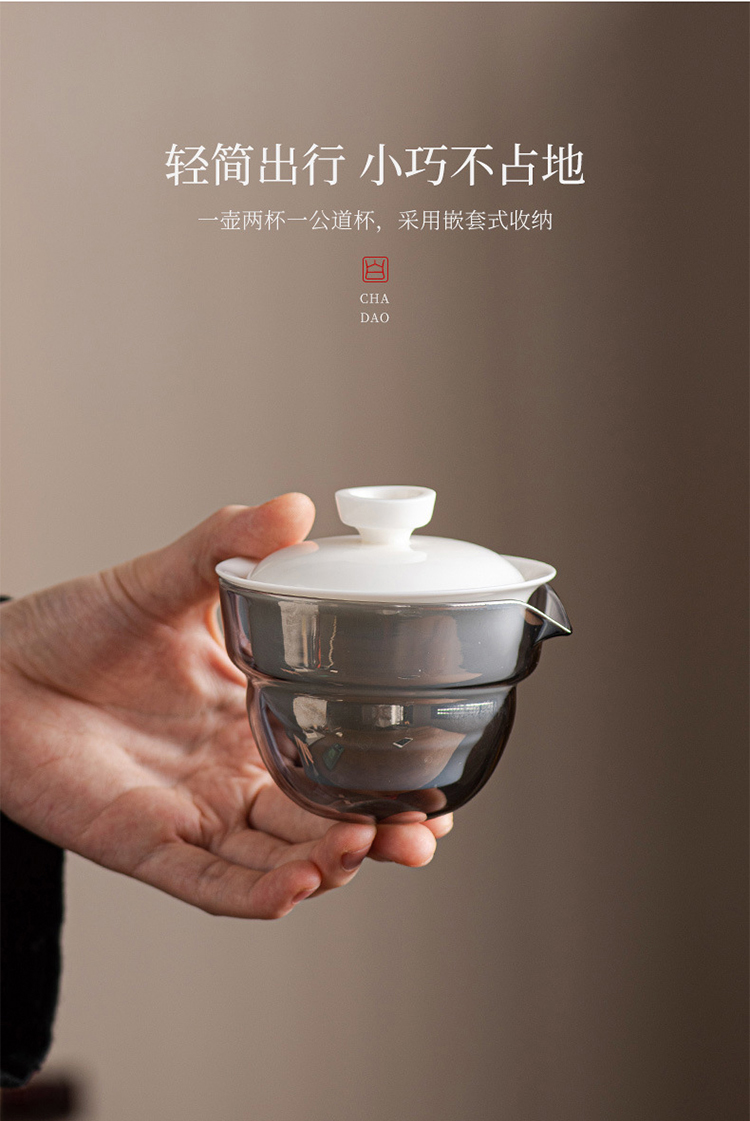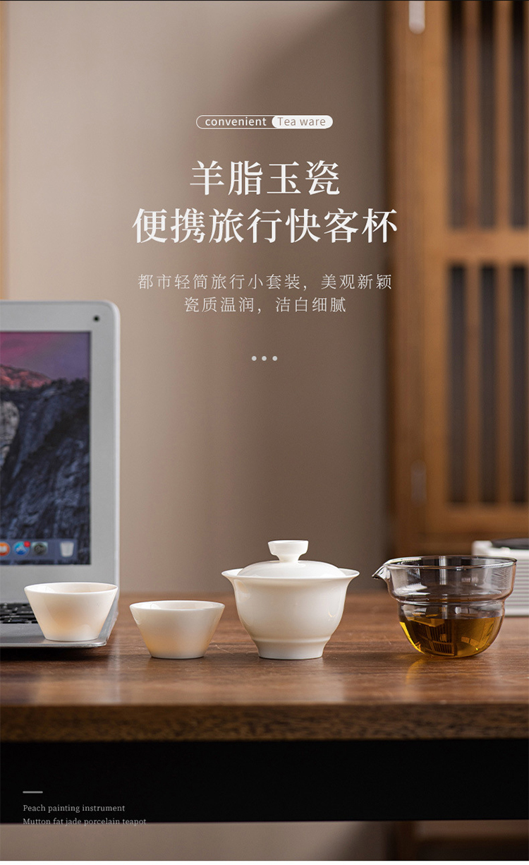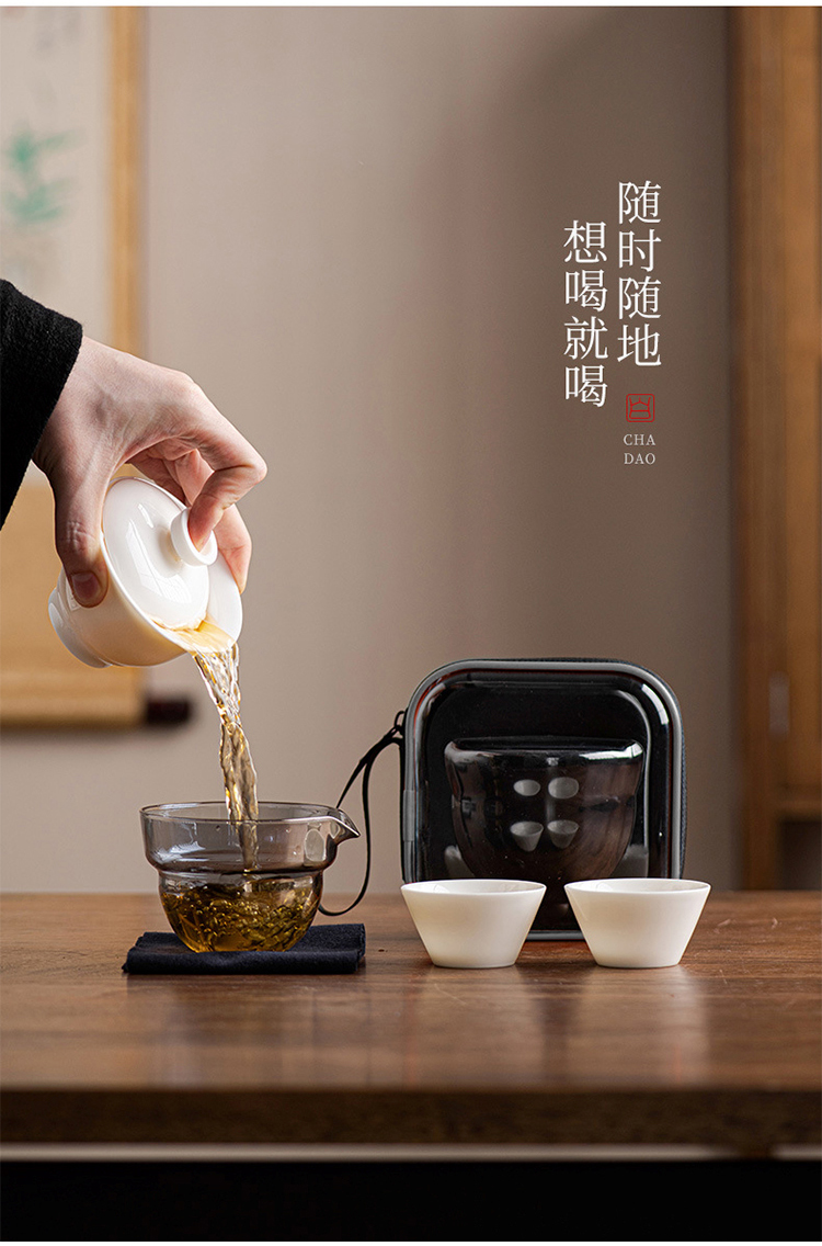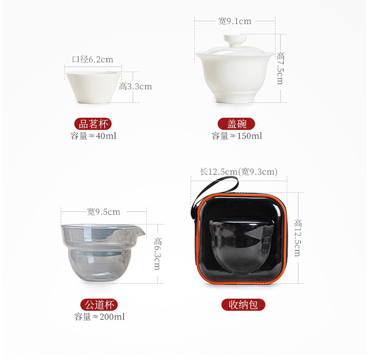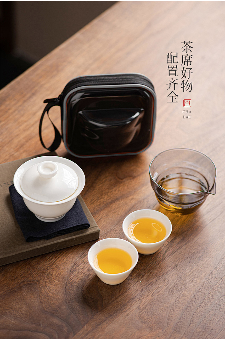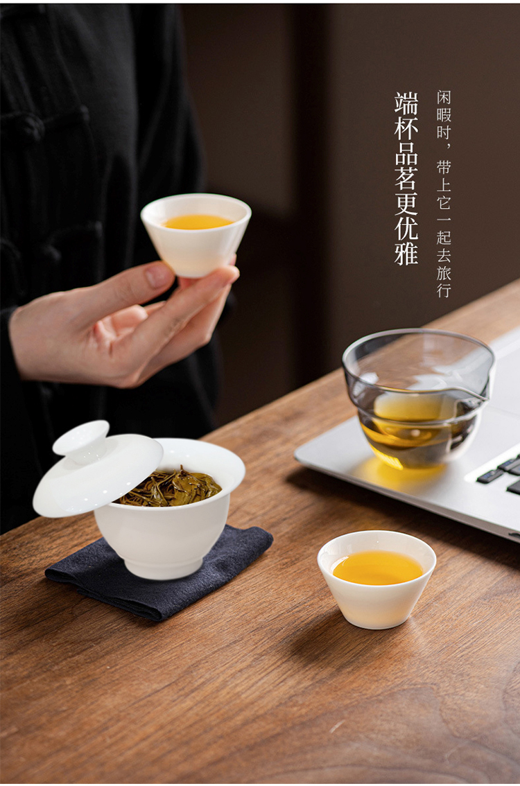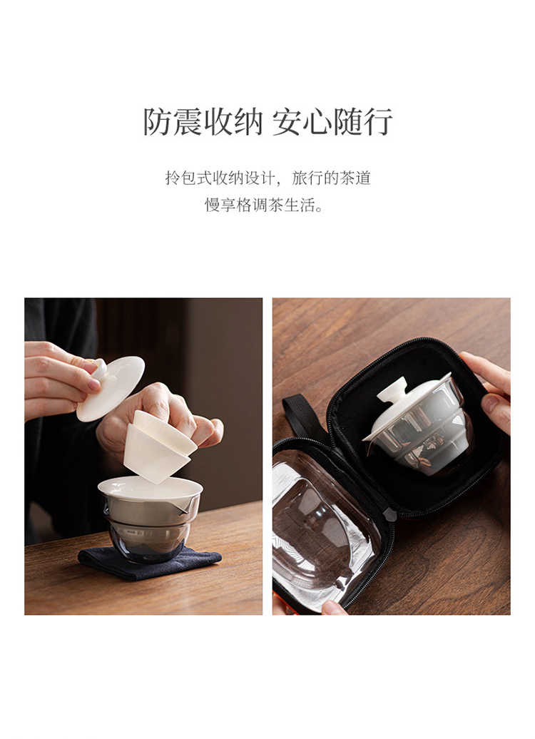 品舰 茶具套装玉瓷快客 PJB049 盖碗*1、玻璃茶海*1、茶杯*2、茶巾*1、便携EV包*1 白色(单位:套)