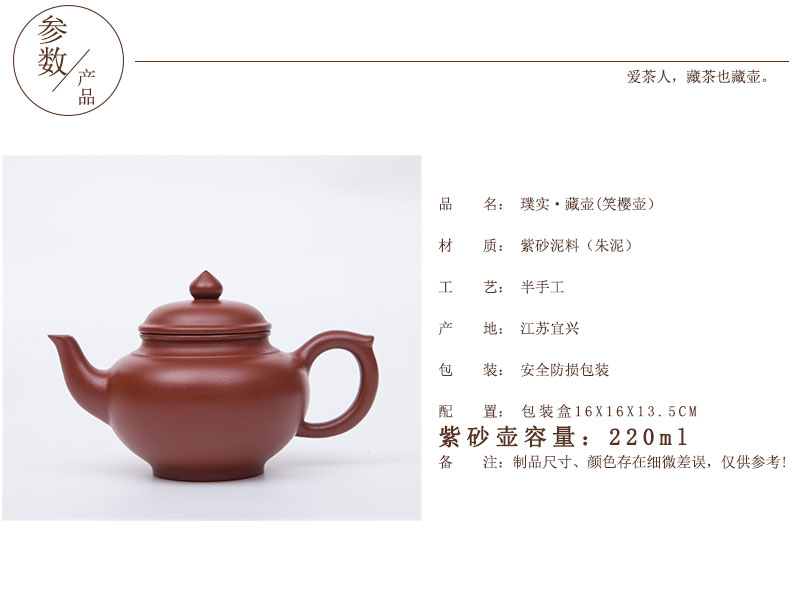 璞实茶器 茶壶 笑樱 220ml 紫砂(单位:套)