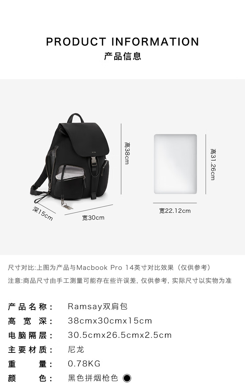 途明(TUMI) Voyageur女士双肩包休闲商务包 0196651DGM 38cmx30cmx15cm 黑色(单位:个)