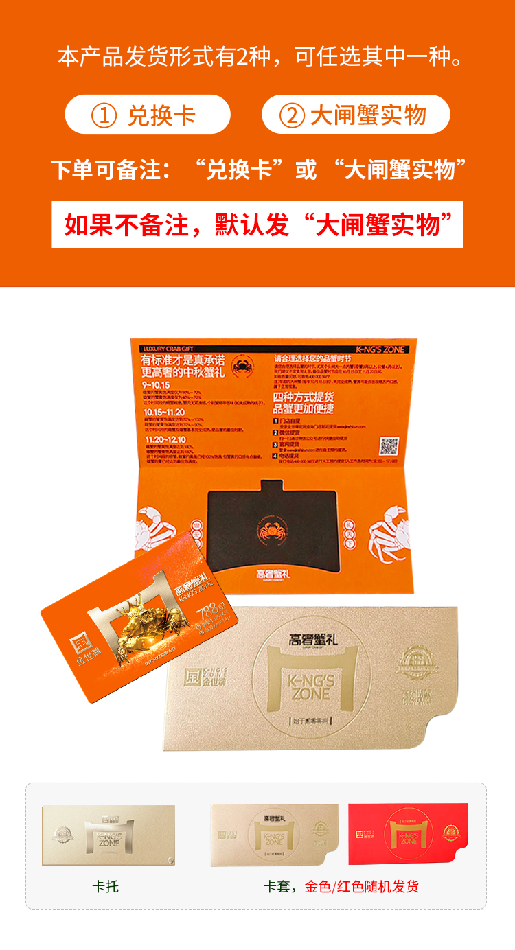 金世尊 25年金世尊大闸蟹蟹卡 A套餐 788型 雄蟹3.5两4只 雌蟹2.4两4只 橙色(单位:件)