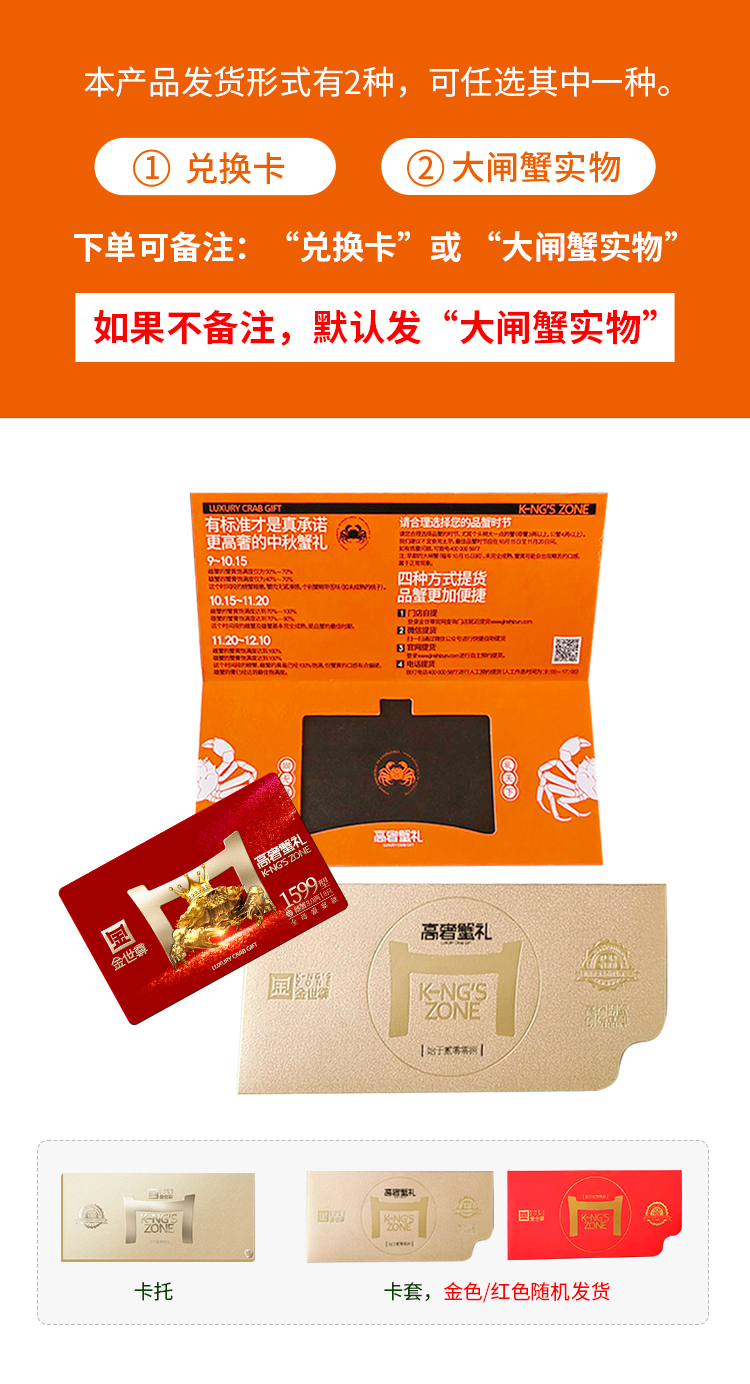 金世尊 25年金世尊大闸蟹蟹卡 D套餐 1599型 金奖全雌蟹限定款 雌蟹3.0两8只 红色(单位:件)