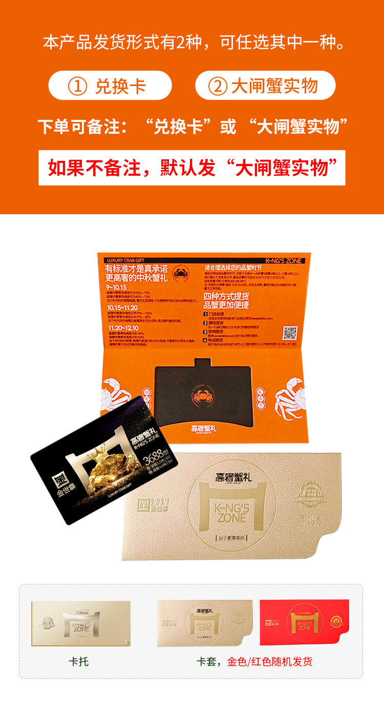 金世尊 25年金世尊大闸蟹蟹卡 H套餐 3688型 雄蟹5.5两5只 雌蟹4.0两5只 黑色(单位:件)