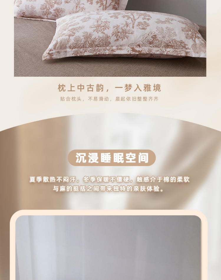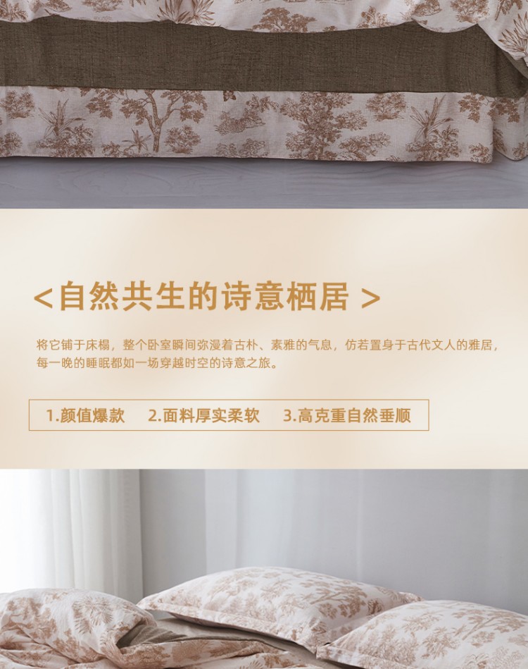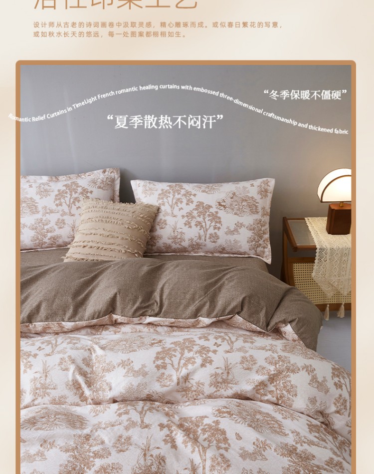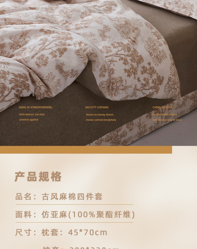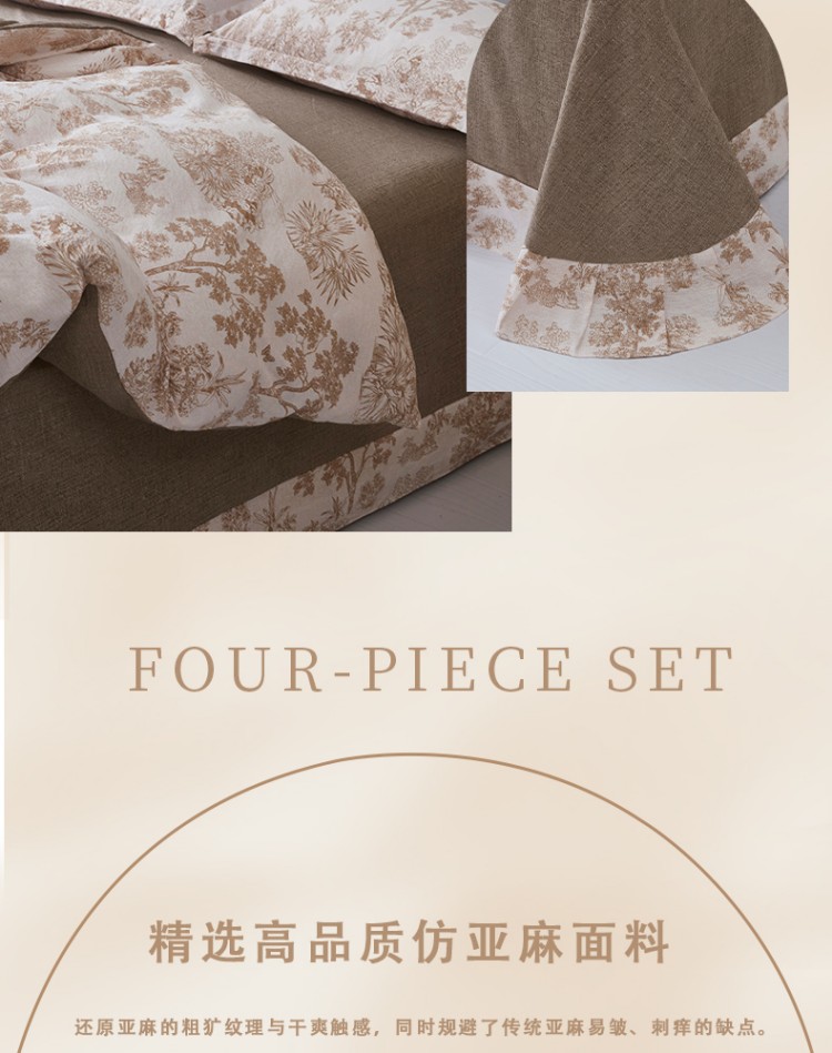奥特佳 古风麻棉四件套 001-010043 200*230cm 200*230cm 咖色(单位:套)