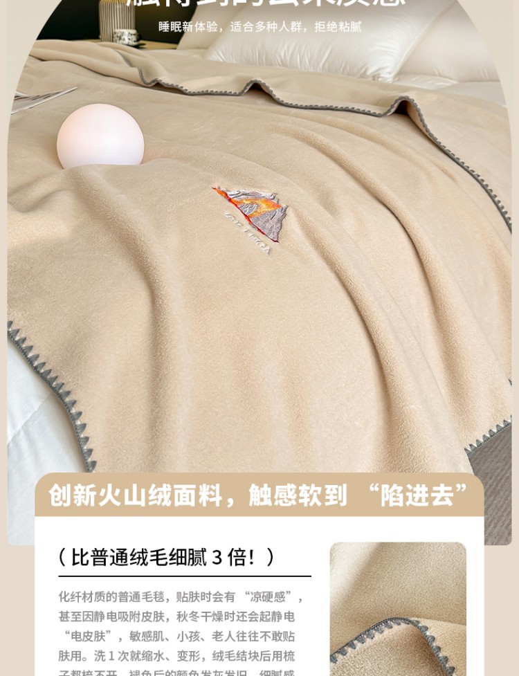 奥特佳 火山绒毛毯 JF070008 200*230cm 200*230cm 奶茶杏(单位:条)