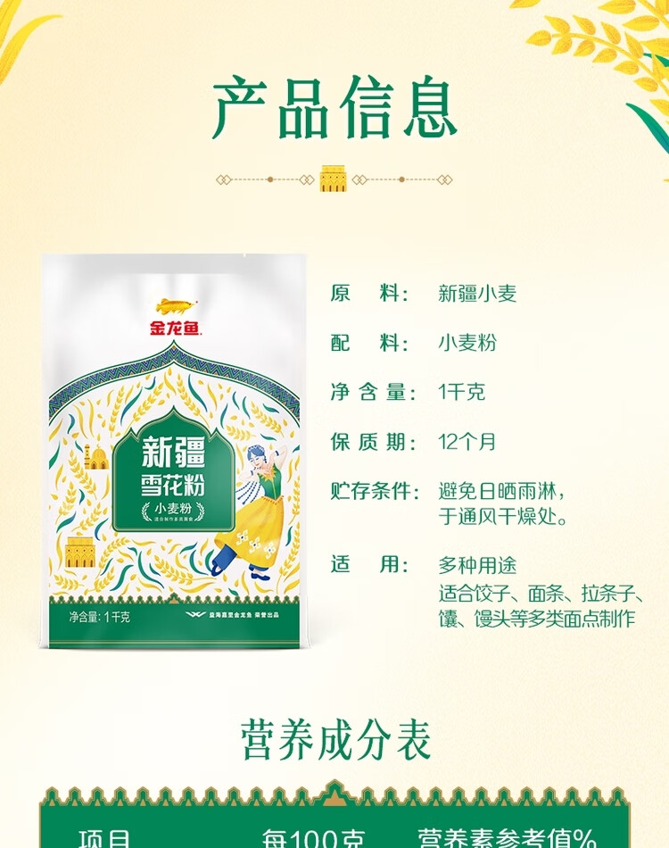 金龙鱼 面粉 新疆雪花粉 1kg 白色(单位:袋)
