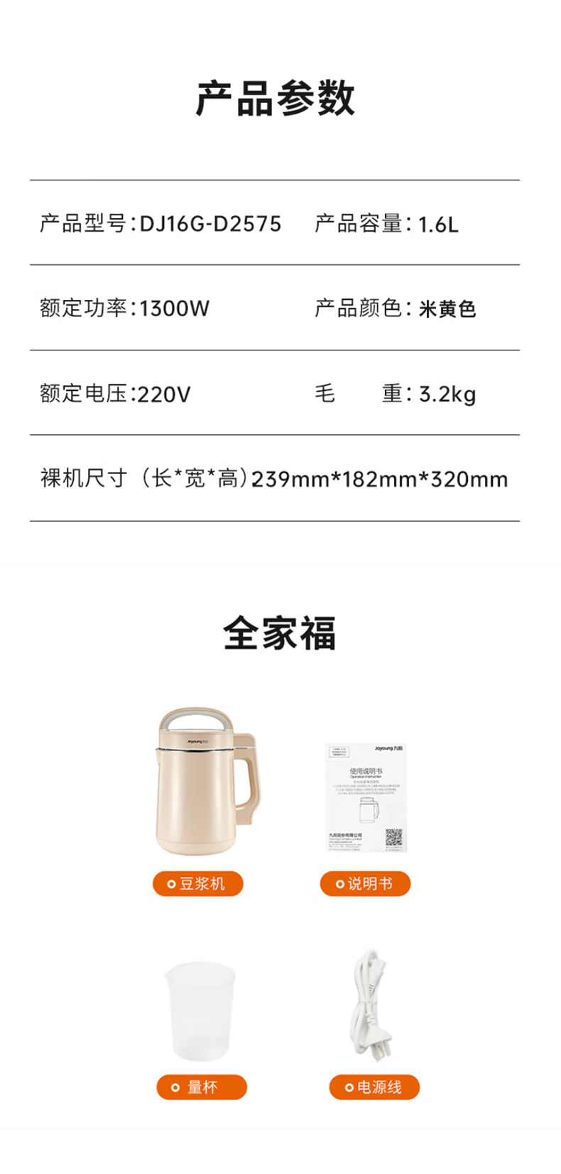 九阳(Joyoung) 豆浆机 DJ16G-D2575 1.6L 琥珀色(单位:台)