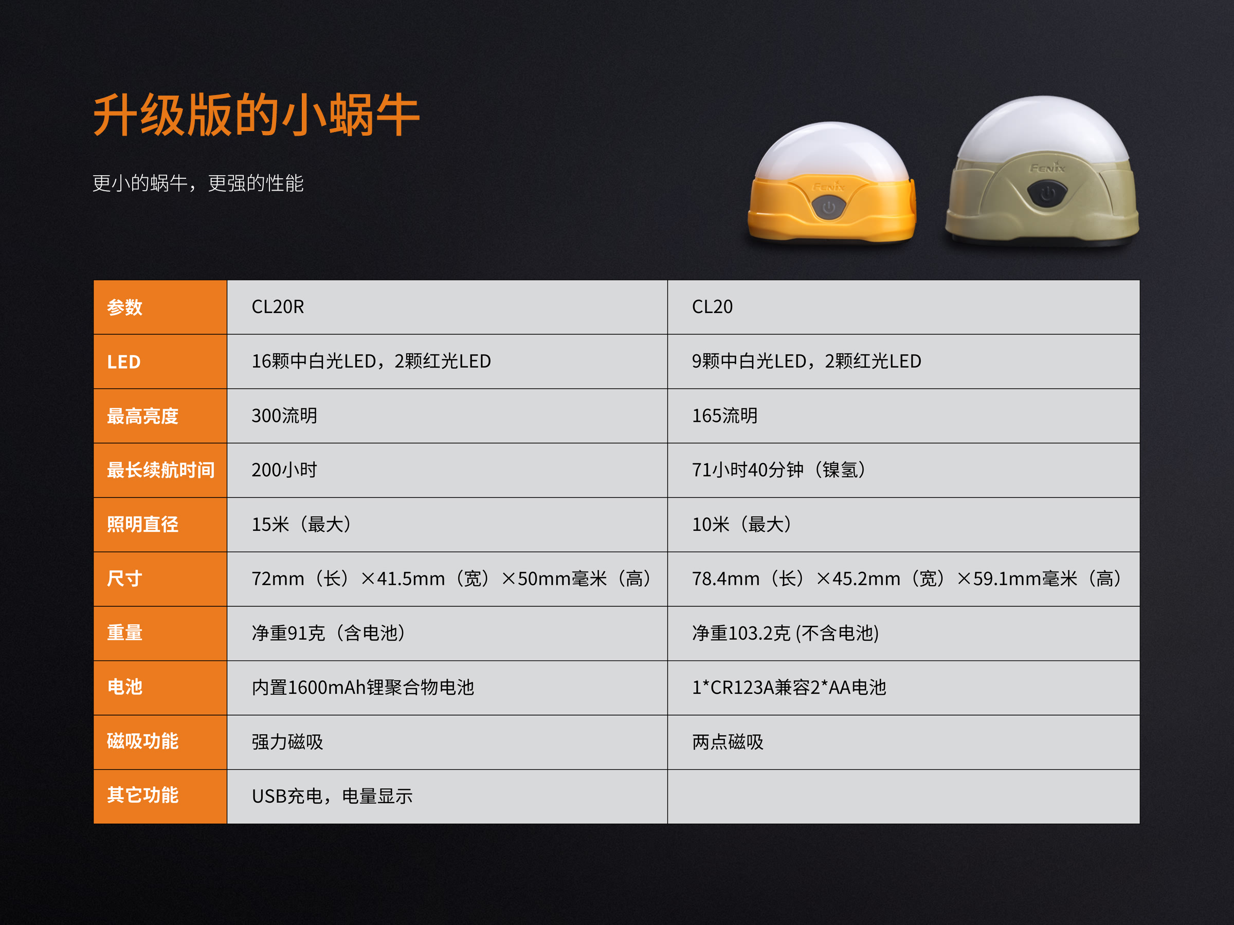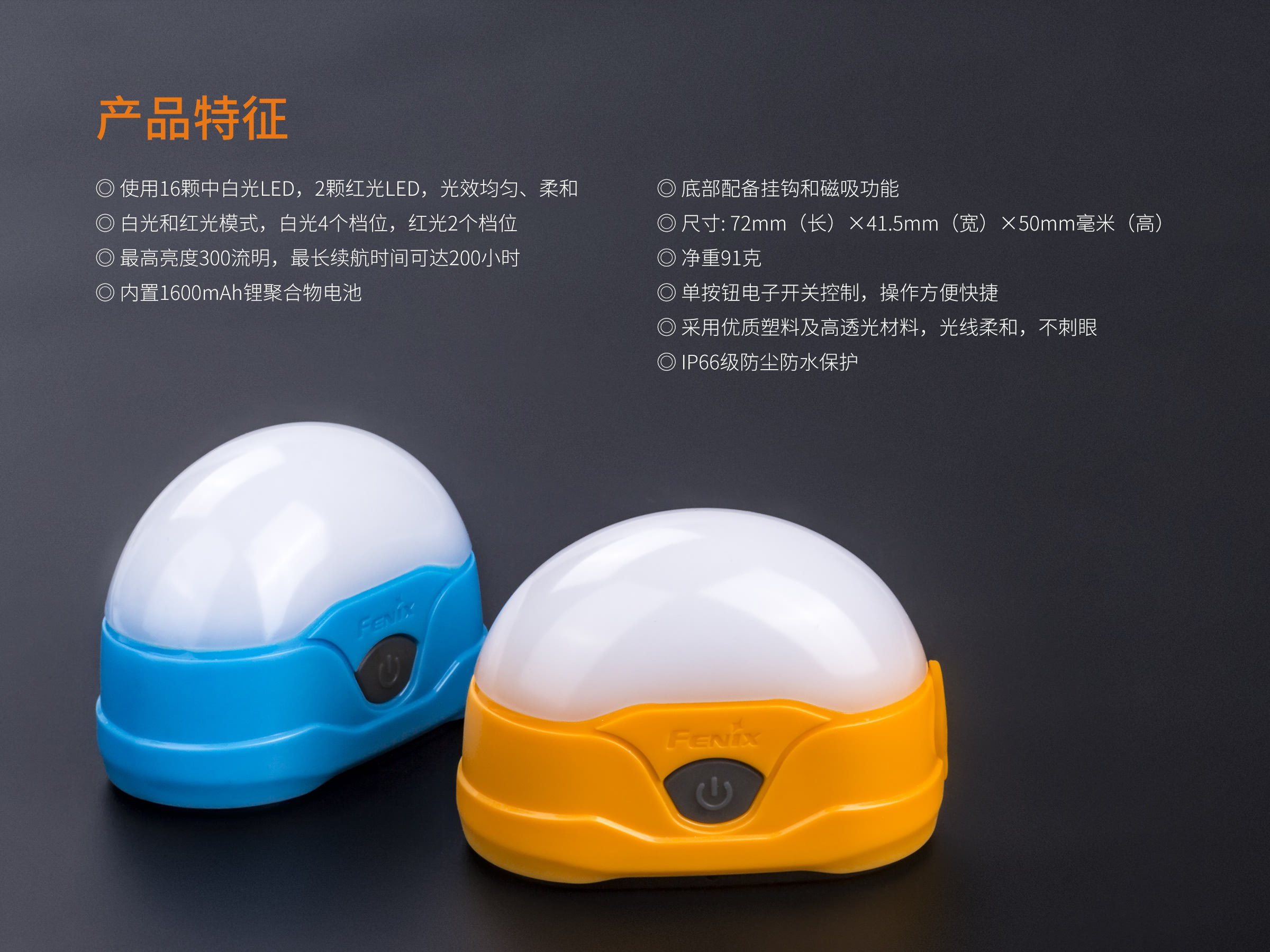 FENIX 便携高性能直充露营灯300流明 CL20R 72*41.5*50mm 黄色(单位:个)