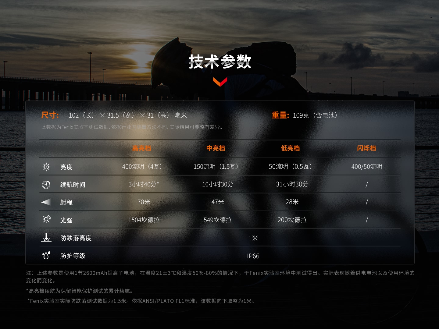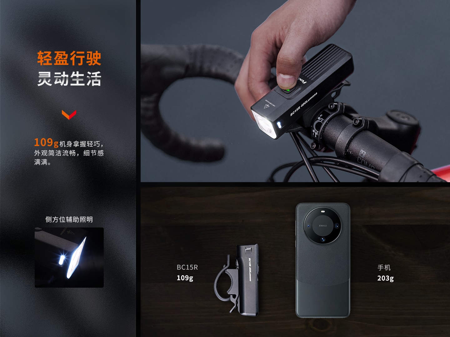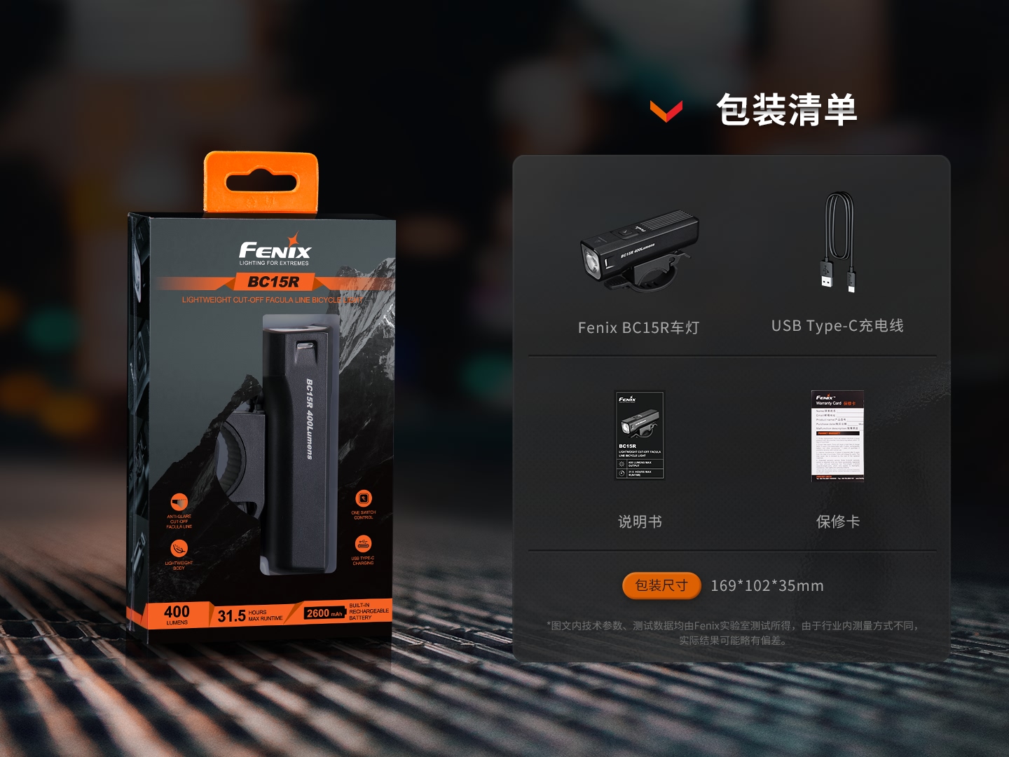 FENIX 轻量化截止线光斑自行车灯400流明防水超亮骑行灯 BC15R 102*31.5* 31mm 黑色(单位:个)
