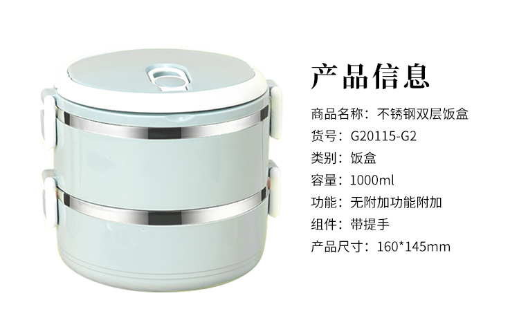 沃德百惠(WORTHBUY) G20115-G2 不锈钢双层饭盒(单位:个) 天蓝色